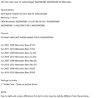 SAFE & SECURE SHOPPING 100% SATISFACTION GUARANTEED FAST SHIPPING Store Categories Store Categories Other eBay Motors Grille You may also like Rear Left/Right ABS Speed Sensor 34526752683 For BMW 3 Series E46 330CI SG U4 16.65 USD Free shipping 2x Tailgate Cable M159508 For John Deere Gator HPX615E HPX815E U4 16.14 USD 16.99 USD Free shipping 5% off 2× Windshield Wiper Arm Nut Cover 55155765AA For Jeep Wrangler 2018 8.64 USD Free shipping Clear lens Side Marker Light For 99-04 VW Golf Jetta Mk4/98-04 Passat B5 B5.5 U4 8.65 USD Free shipping Right Side Car Rearview Mirror Cover Matte Black For Ford Fiesta 2009-2015 U4 16.77 USD 17.65 USD Free shipping 5% off 2PCS New Vintage Style California License Plate Year & Month Tag Holder !! 15.99 USD Free shipping 2PCS Air Duct Seal To Turbocharger 6420940480 6420940580 Fit Mercedes U1 U4 Product Description 2PCS Air Duct Seal To Turbocharger 6420940480 6420940580 Fit for Mercedes Specifications: Item Name: Engine Air Duct Seal To Turbocharger Warranty: 3 Years OEM Numbers: 6420940480 / A 642 094 04 80 / A6420940480 6420940580 / A 642 094 05 80 / A6420940580 Fitment: For exact years and models please check compatibilities. For 2007-2009 for Mercedes-Benz E320 For 2011-2013 for Mercedes-Benz E350 For 2007-2009 for Mercedes-Benz GL320 For 2010-2012 for Mercedes-Benz GL350 For 2007-2009 for Mercedes-Benz ML320 For 2010-2012 for Mercedes-Benz ML350 For 2007-2009 for Mercedes-Benz R320 For 2010-2012 for Mercedes-Benz R350 Package Includes: 2 * Intake Seal(Same as picture show) NOTE: Due to light and screen difference, the item's color may be slightly different from the pictures. About Us Shipping Terms Contact Us About Us Bruce & Shark is a company Focus on Motorcycle parts more than 11 years. The design inspiration comes from the awe of the vast sea and worship of the fighting sharks, therefore Bruce & Shark takes a shark as brand logo. Since its inception, we have always put the "customer first" and "top quality" as our principle. We specialized in selling Motorcycle parts and providing customers with various types of high-quality products. Our brand Bruce & Shark has enjoyed good reputation in America, Europe, Japan, Canada and Africa, covering more than 30 countries. Our vision is to deliver high-quality Motorcycle parts products and sincere services to the world. Our main products are motorcycle mounted, fuel pump, stator, windshield, Seat Cover, motorcycle fairing. Welcome to our shop to choose products that are worth more for your Motorcycle! Please Add me to your list of favorite sellers and visit often. Thank you for your business. Shipping Shipping Terms International Buyers – Please Note: 1. Import duties, taxes and charges are not included in the item price or shipping charges. These charges are the buyer’s responsibility. 2. Please check with your country’s customs office to determine what these additional costs will be prior to bidding/buying. 3.Buyers' Information: We strive our best to provide you the most reliable, affordable way of shipping service. But sometimes international delivery is highly depended on the courier company and local customs/duties. If you do not receive your item on time, please sent us ebay message immediately for further assistance. Thank you for your understanding. Terms We stand behind everything that we sell and will do everything possible to assure you are satisfied. When you receive your purchase if you are not 100% satisfied, please sent me ebay message and we will do our best to make you happy. If you still want to return your purchase, simply ship the item(s) back to us and we will refund your original purchase price and the original shipping charge. Buyers are responsible for the postal cost of returning the items. We must be notified of the intent to return your item within 30 days of receiving the item. Items returned must be in the same condition that they were received. How to return 1,Please ask us for return address . 2,Shipping back the package . The RMA#(Return Merchant Authorization Number = Your ebay ID) must be clearly written on the return package ,Otherwise the package will be refused. 3,Sent us the return tracking number. 4,All returns will be inspected prior to a credit being issued. Contact Us Sent ebay message in English If you have any questions, our Customer Service staffs welcome you to sent me ebay message. We strive to answer all questions and resolve any problems as quickly as possible. Business Hours: HongKong Time GMT+8:00 Monday-Saturday 9:00-17:00 Copyright © Bruce&Shark All rights reserved