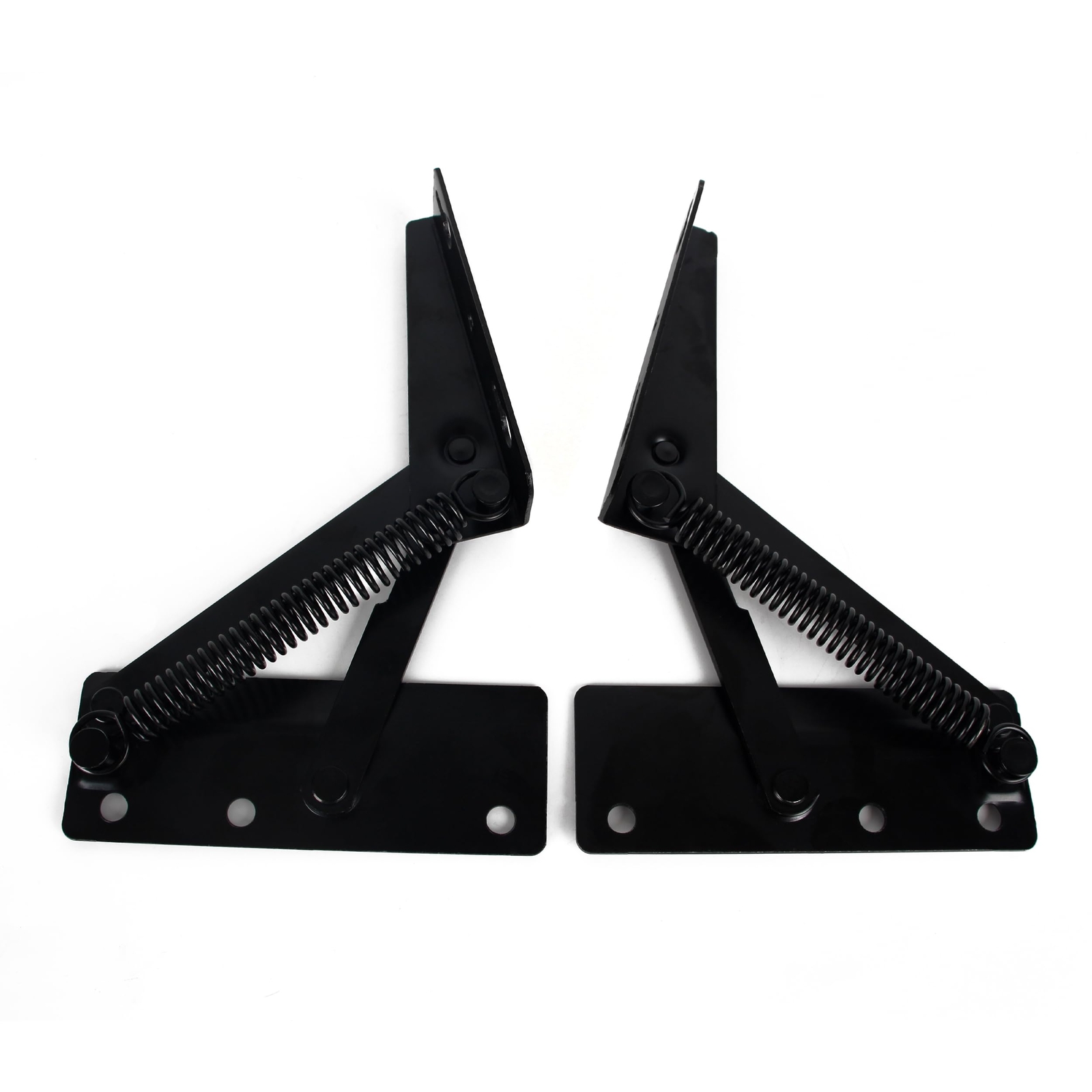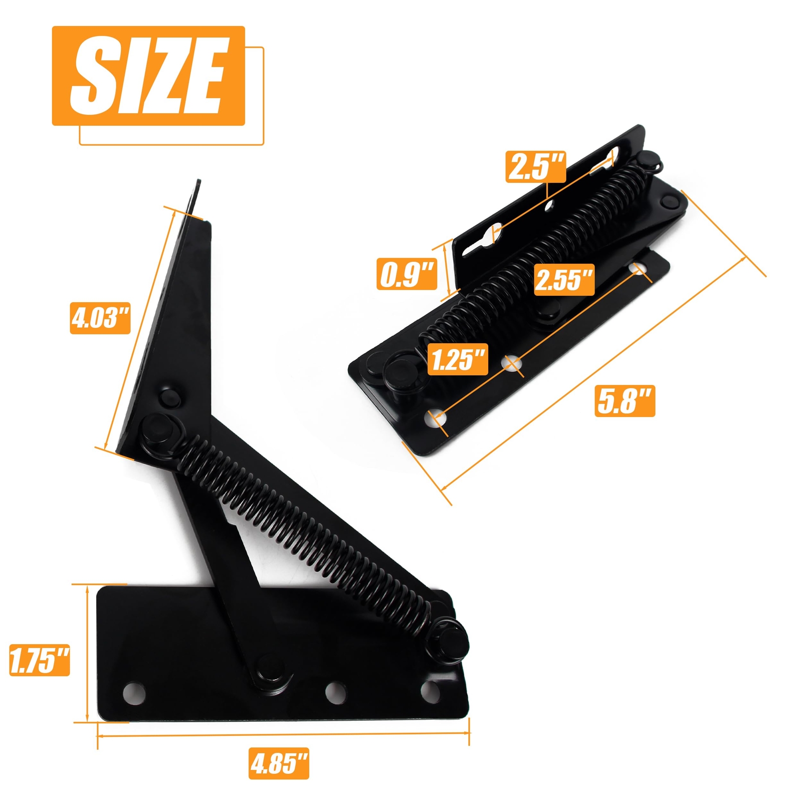 2 pieces of 80-degree foldable lifting bracket spring hinged cabinet door can lift and open the clamshell bracket, For cabinet door sofa hardware accessories Specification: Material: Cold rolled steel plate Surface treatment: Nickel plating Scope of application: cabinet doors, sofas, etc. Service life: more than 50,000 times of opening and closing The hinge is made of stainless steel, which is corrosion resistant and durable. High-quality springs ensure strength and long life, and the opening angle is 80°. The nickel-plated surface is smooth and shiny. Each package has left and right spring hinges. Swivel sofa pillows. You can adjust the sofa headrest to a steeper or more inclined position to find the angle you need. At the same time, this product can also be used in cabinets, lockers and other places, you can easily open and close the cabinets or lockers Uses: sofa headrests, bedside tables, cabinets, etc. 1. The durable heavy-duty hinge is made of stainless steel, which is non-rusting, non-corrosive and durable. Invisible design, simple and practical 2. The spring has high strength and durability, and the opening angle is 80 °. For the top lift hardware support, it is suitable for folding beds, folding sofas, folding sofas, cabinet doors with lifting doors, etc. 3. Each package includes a left spring hinge and a right spring hinge. Does not include screws 4. 80 degree foldable sofa bed cabinet hinge spring hinge, furniture storage support hinge, 80 degree cabinet door flap support black hinge, liftable support flap cabinet door
