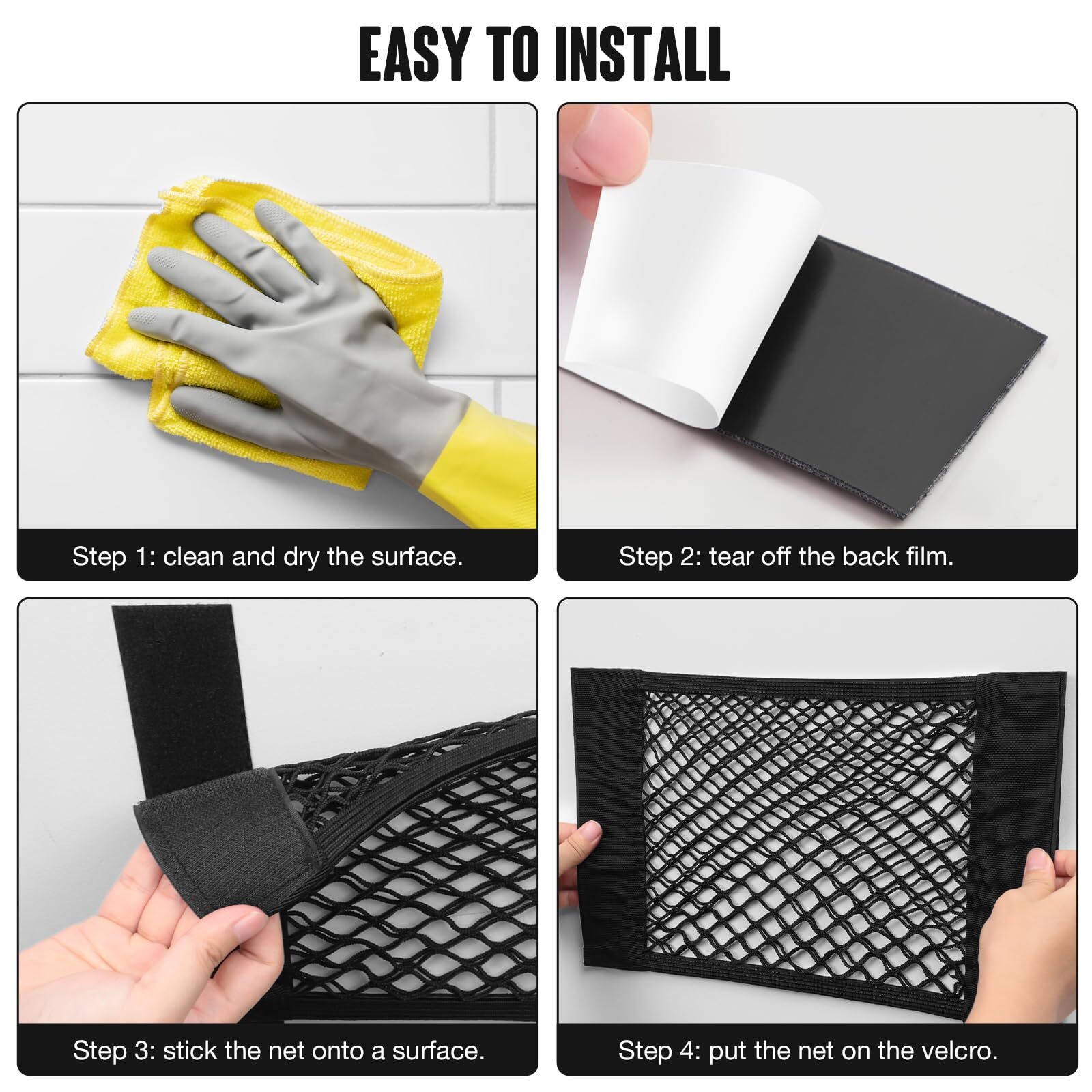 2PCS 25x60cm / 9.8x23.6in Car Storage Net Bag with Tape Stickers, Adhesive Mesh Pocket Net String Pouch Bag, Stretchable RV Storage Netting, Wall Sticker Organizer Pouch Bag for Home Storage 【High Grade Material】-- mesh pocket net is made of premium polyester material. It is so elastic that hold your stuffs steadily and not easy to sag. In addition, what makes our mesh cargo net irresistible to others is that it not only is suitable for fluff surface, but can be attached to smooth surface with an adhesive tape (Note: adhesive tape is included). 【Practical Function】-- This cargo organizer net serves a practical function that it's a best choice for you if you are in a state of fretting about a lot of stuff and narrow space. You can put your phone, card, receipt, glasses and other small items into it, so that adds more space for you and make the room neater. 【Upgrade Design Better Serve You】-- This mesh pocket net applies a simple and friendly design. It can be easily installed in one step with no additional operations and securely attached onto most surface with the Hook-and-loop Fastener. 【Wide Application】-- Our mesh pocket net has a wide scope of application. It can be used for storing lot of small items and saving space in any places you want, such as a car, truck, boats, especially at home. It provides you with additional room in the limited space for bottles, essentials, sports equipment, travel groceries, repairing tools and etc. 【Pack & Size】-- 2 x mesh storage pocket bag (25 x 60cm / 9.8 x 23.6in). makes your life more organized Cargo Storage Organizer Net This adhesive tape storage net combines the nice looking and superb durability for good performance. Crafted with quality polyester material, these pouch bags provides you with a great place to store things without taking up any space. By putting the things you carry like the bottles, keys, cards, wallets and other items inside it, keeping all the items secure from rolling around especially during a long bumpy drive. Adding mesh cargo net to you, you will lead an even more simple and comfortable life. Shipping We offer FREE shipping on all orders! We ship within Three business days of payment, usually sooner. We use a selection of shipping services such as UPS, FedEx, USPS etc. We only ship to the lower 48 states, no APO/FPO addresses or PO Boxes allowed. Local pickups and combined shipping options are not provided at this time. Return You can return a product for up to 30 days from the date you purchased it. Any product you return must be in the same condition you received it and in the original packaging. Please keep the receipt. Payment We accept payment by any of the following methods: PayPal Please pay as soon as possible after winning an auction, as that will allow us to post your item to you sooner! Feedback Customer satisfaction is very important to us. If you have any problem with your order, please contact us and we will do our best to make you satisfied. Contact Us If you have any queries, please contact us via ebay. We usually respond within 24 hours on weekdays. Please visit our eBay store to check out other items for sale! Thank you for shopping at our store.