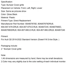 For BMW E46 323i 325i 328i 330i M3 305 02-06 LHD Center Console Trim Base BE F13 70.61 USD 74.33 USD Free shipping 5% off Gas Tank Fuel Cock Valve Petcock fit for Yamaha YZF R1 XJ900 YZ80 4KM-24500-00 18.76 USD Free shipping 7" LCD Digitizer Touch-Screen C070EAT01.0 For Uconnect Radios VP2 2018-2022 83.4 USD 87.79 USD Free shipping 5% off 6L80 6L90 Transmission Rebuild 1-2-3-4 3-5-Reverse Clutch Seals Pack O-Rings 20.89 USD 21.99 USD Free shipping 5% off NEW Set of 4 Door Handles Chrome For Chrysler 300 & 300C 2005-2010 4589009AH USA 74.87 USD Free shipping 1pcs Fuel Injectors 7561277 13537561277 Fit BMW N45 N46N E93 320I 2.0L 17.87 USD Free shipping CARBURETOR CARB REPAIR REBUILD KIT FOR GY6 125CC Aprilia PD24J BMW ATV Go Kart 15.79 USD Free shipping Oil Cooler Filter Housing Seal Gasket O-ring 21304-JA11A For Nissan Armada Titan 10.68 USD Free shipping CNC Adjustable Kickstand Side Stand Fit HONDA CBR 600 1000 RR 600RR 1000RR 41.86 USD Free shipping M18X1.5 Female Aluminum Weld On Fitting Bung US 11.2 USD 11.79 USD Free shipping 5% off Pair Silver Motorcycle Handlebar Riser Kit Moves Bar Up For BMW F800GS 2008-2017 33.13 USD 34.87 USD Free shipping 5% off NOX Sensor 8R0907807G 8R0907807Q For Audi Q5 8R/8RB 2008-2018 126.15 USD 132.79 USD Free shipping 5% off A Fantastic Shop Send us a message Our Store Seller Profile Feedbacks Save this seller Contact 2PCS Front Bumper Cover Grille Bezel Insert Fit Audi Q5 2018-2022 Gloss Black Specification: Type: Bumper Cover grille Placement on Vehicle: Front, Left, Right, Lower Size: Same as pictures show Color: Gloss Black Material: Plastic Fitment Type: Direct Replacement Manufacturer Part Number: 80A807679D, 80A807679DRU6, 80A-807-679-DRU6, 80A-807-679-D-RU6, 80A807245, 80A807680D, 80A807680DRU6, 80A-807-680-D-RU6, 80A-807-680-DRU6, 80A807246 Fitment: For Audi Q5 2018-2022 Standard Version (Doesn't fit S-line Style. ) Packaging include: 2 * Bumper Cover grille Note: 1.All dimensions are measured by hand, there may be small deviations. 2.Color may vary slightly due to the color setting of each individual monitor. About US About Our Items We strive to describe all items accurately and thoroughly, with the utmost care and attention to detail. However, to ensure a mutually satisfactory transaction, we kindly ask for your assistance in thoroughly reviewing the item description and photos, and addressing any questions before placing a bid. Customer Satisfaction We stand behind our commitment with exceptional service, a 100% money-back guarantee, and a dedication to customer satisfaction. I am readily available to address any inquiries or concerns you may have, both before and after your purchase. Our aim is to ensure your shopping experience is enjoyable and that you're delighted with your purchase. Feedback Your feedback is crucial to our business's success. If you're satisfied with your purchase and the service you received, we would greatly appreciate your positive feedback, along with an overall Detailed Selling Rating (DSR) of 5. Please take a moment to leave us positive feedback. Our eBay account is set up to automatically reciprocate positive feedback once yours is received. If you're considering leaving neutral/negative feedback or opening an eBay/PayPal case, we encourage you to reach out to us immediately. We're committed to resolving any issues to the best of our ability. Shipping Parcel will be shipped using Standard shipping method. For security purposes, items will be shipped exclusively to the confirmed address on Paypal. Please ensure your Shipping address is up to date before proceeding with payment. Estimated delivery time within the United States ranges from 3 to 10 business days, depending on your location. Returns We accept returns within 60 days from the date the buyer receives the item. If the item is found to be defective upon receipt, the customer has up to 30 days from the date of receipt to request an exchange for a new item or a refund. For returns due to a change of mind, we accept items in their original selling condition. However, if the package has been opened due to a mistaken order, it does not qualify for our return policy. Please note that the buyer is responsible for covering the cost of return postage. If you encounter any issues, please reach out to us via eBay message, and we'll respond within 24 hours. Front Bumper Grill Grille Fit Mercedes-Benz GL X164 GL450 GL500 2010-12 Chrome 119.87 USD Free shipping Pair Shiny Black Front Bumper Kidney Grille For BMW E83 X3 LCI Facelift 2007-10 53.87 USD Free shipping Raptor Grille Grill LED Light Wiring Harness Cable Fit Ford F-150 F150 US 13.62 USD Free shipping Front Bumper Upper Grille Grill Fits Land Rover Range Rover Vogue L405 2013-2017 87.87 USD Free shipping Lower Bumper Fog Light Cover Grill Grille Fit AUDI A3 S3 S-Line 2013-2016 68.87 USD Free shipping RH Chrome Honey Comb Fog Light Cover Grille Grills For Audi A4 B8 2009-2012 USA 27.87 USD Free shipping Carbon Fiber Front Bumper Grill Frame Cover Trim Fit BMW X2 Series F39 18-21 H2 67.87 USD Free shipping Front Bumper Grille Grill Fit Mercedes Benz SLK-Class R170 SLK320 SLK230 SLK200 139.87 USD Free shipping 2PCS Front Bumper Fog Light Lamp Cover Bezel Grille fit Ford Focus 2015-2018 28.87 USD Free shipping GT-R Style Front Bumper Grille Grill Fit Mercedes Benz W117 CLA250 2013-2019 CLA 99.87 USD Free shipping Front Bumper Grille For Benz C Class W204 W/LED Emblem C300/C350 08-14 Chrome UE 124.87 USD Free shipping Front Upper Grill Grille 2048800283 For Mercedes-Benz GLK X204 GLK350 2010-2012 115.87 USD Free shipping