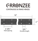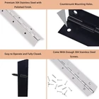 2Pack Piano Hinge with Holes, 304 Stainless Steel 2" Open Width x 12" Continuous Hinge, 0.047" Leaf Thickness, Screws included How to Install a Piano Hinge Cut the piano hinge to length with a hacksaw and file down any rough edges. Mark the location of the screw holes using a hinge center punch. Drill pilot holes and attach the hinge. Features: Made of 304 Stainless Steel Bright nickel finish Screws included 2 3/8 in. spacing between the screw holes Designed to be cut to any desired length Specifications: Hinge Type: Piano Mount Type: Screw-On Material: 304 Stainless Steel Leaf Thickness: 0.047" Overall Width: 2" Pin Material: 304 Stainless Steel Knuckle Length: 3/4" 【Heavy Duty Piano Hinges】The Continuous Piano Hinges are Composed of extremely durable 0.047" thick 304 Stainless Steel with polished surface, rust proof, durable and prevents misalignment. 【2PCS 12" Piano Hinge】Package Include 2pcs 12in continuous hinge, It includes screws, and there are 2 3/8 in. spacings between each screw hole. Each knuckle of continuous hinge is a load-bearing point, providing uniform strength and smooth pivot action; friction-type pins won't fall out. 【Easy to Cut】This 2 in. x 12 in. continuous hinge can be cut to the length needed for your project and it is ideal for wood working project, RV project, folding tables, cabinets, tool sheds, chests and cabinets. 【Countersunk Mounting Holes】12 inch hinges with holes have countersunk mounting holes to aid surface-mounting to door or frame. They provide more stability than traditional hinges, making them ideal for heavier doors and lids that require extra support. 【Heavy Duty Conceal Box Hinges】The piano hinges offer continuous supports along the entire length of the door and lid for durability. Continuous hinges are ideal for various doors, cabinet, tool box, wooden box, gift box.