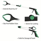Product Description - Reaching Aid for Elderly - It is also a reaching aid tool for elderly to extend high or low. - Perfect for Daily Clean - It is helpful for daily yard clean, river floating trash. - Ergonomic Grip - Makes the handle easy and comfortable to hold and squeeze. - Rubber-tipped Grippers - Provides a secure hold and prevents damage when picking-up fragile items. Features: 32" Extra long and Aluminum Material --- Reaches items low and high, no need to bend down or climb a stool or ladder; Light weight but strong, can use for a long time, lightweight aluminum pole features rubber-tipped grippers to prevent damage Claw design - The grabber claw is coated with premium rubber to provide maximum grip strength, allowing you to lift items of all shapes and sizes with ease Handle and trigger - Padded, anti-slip handle and contoured trigger matches the natural shape of your hand for comfortable, pain-free use. Especially important if using for extended periods of time. This option allows the grabber to be used both vertically and horizontally for ultimate versatility Suitable for lots situation - For elder to pickup items in the yard, great for outdoor trash picker, help disabled to reach items, arm extension for kids and adults What you get: 2 x Grabber