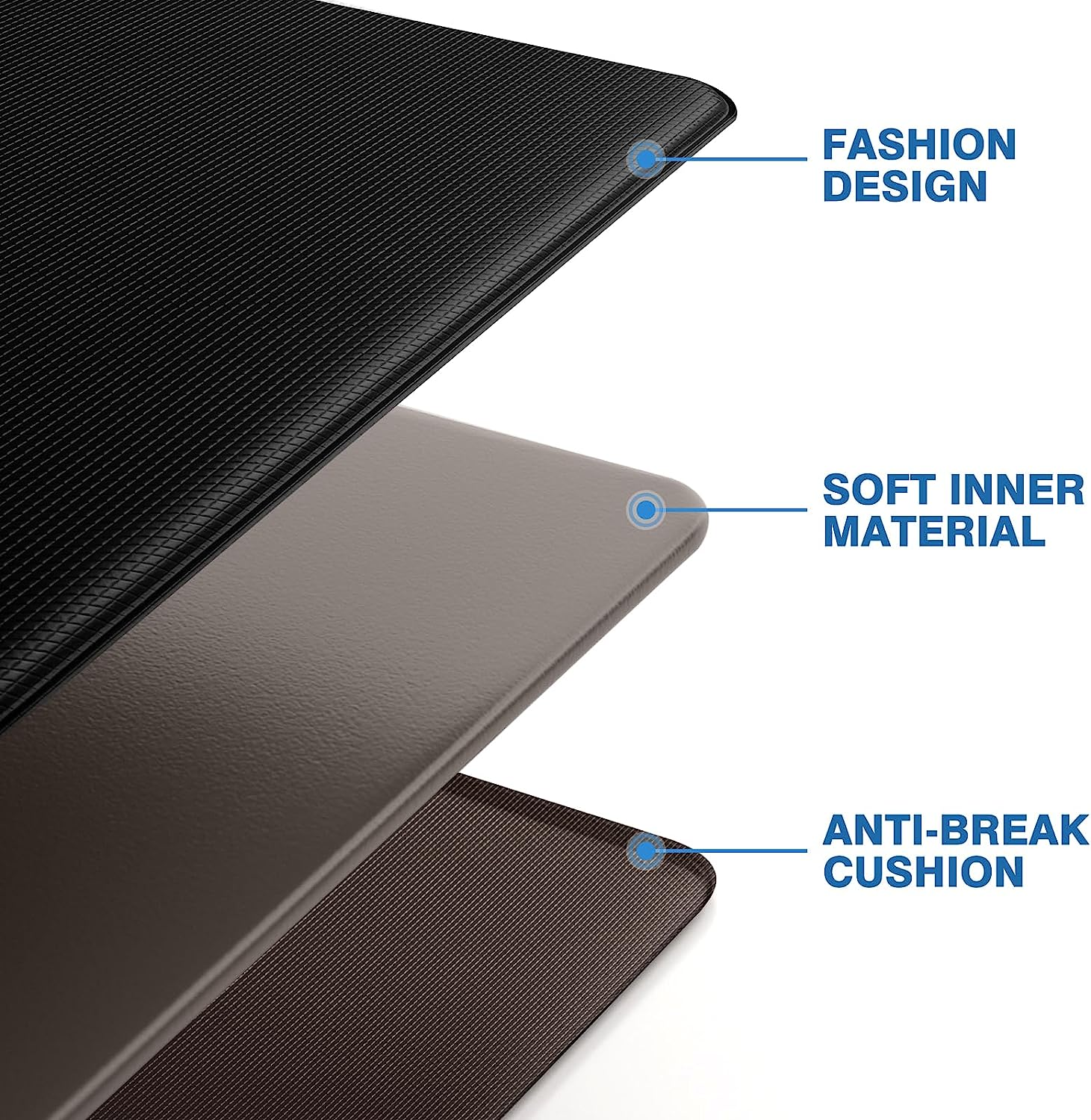 Anti-Fatigue Comfort: StepRite 0.4 inch thick kitchen mat offers supportive cushioning that eases strain on your feet and joints, allowing you to stand comfortably for longer periods in the kitchen Stain Resistant: Our kitchen mats have a stain-resistant texture that makes cleaning simple. Whether it’s water, wine, or other spills, you can easily wipe the mat clean with a damp cloth or rag Non-Slip Design: This standing mat features non-slip backing to keep it securely in place on various surfaces like tile, wood, ceramic, and marble. For optimal safety, always place the kitchen mat on dry, flat surfaces Reliable Material: StepRite kitchen rugs are crafted from premium material that maintains its shape and support over time, ensuring long-lasting performance without deterioration Versatility: This anti-fatigue mat is perfect for multiple areas, including the kitchen, laundry room, office desk, doorways, and balconies. It provides a spacious standing area, making it a practical addition for various tasks at home or in the office Product description