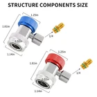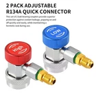Product description: Material: Made of solid brass and metal Red: High Side Quick Connector/Adapter (1/4" SAE Male Flare) Blue: Low Side Quick Connector/Adapter (1/4" SAE Male Flare) Feature : This 90 Degrees Quick Connectors set can provide a reliable and safe valve accessory to system at working pressure. Compatible with R134 service ports,1/4" male flare. Side fitting for A/C manifold gauge set (R-134A) type. Note : The real color of the item may be slightly different from the pictures shown on website caused by many factors such as brightness of your monitor and light brightness. Package included: 1 x high side quick connector 1 x low side quick connector