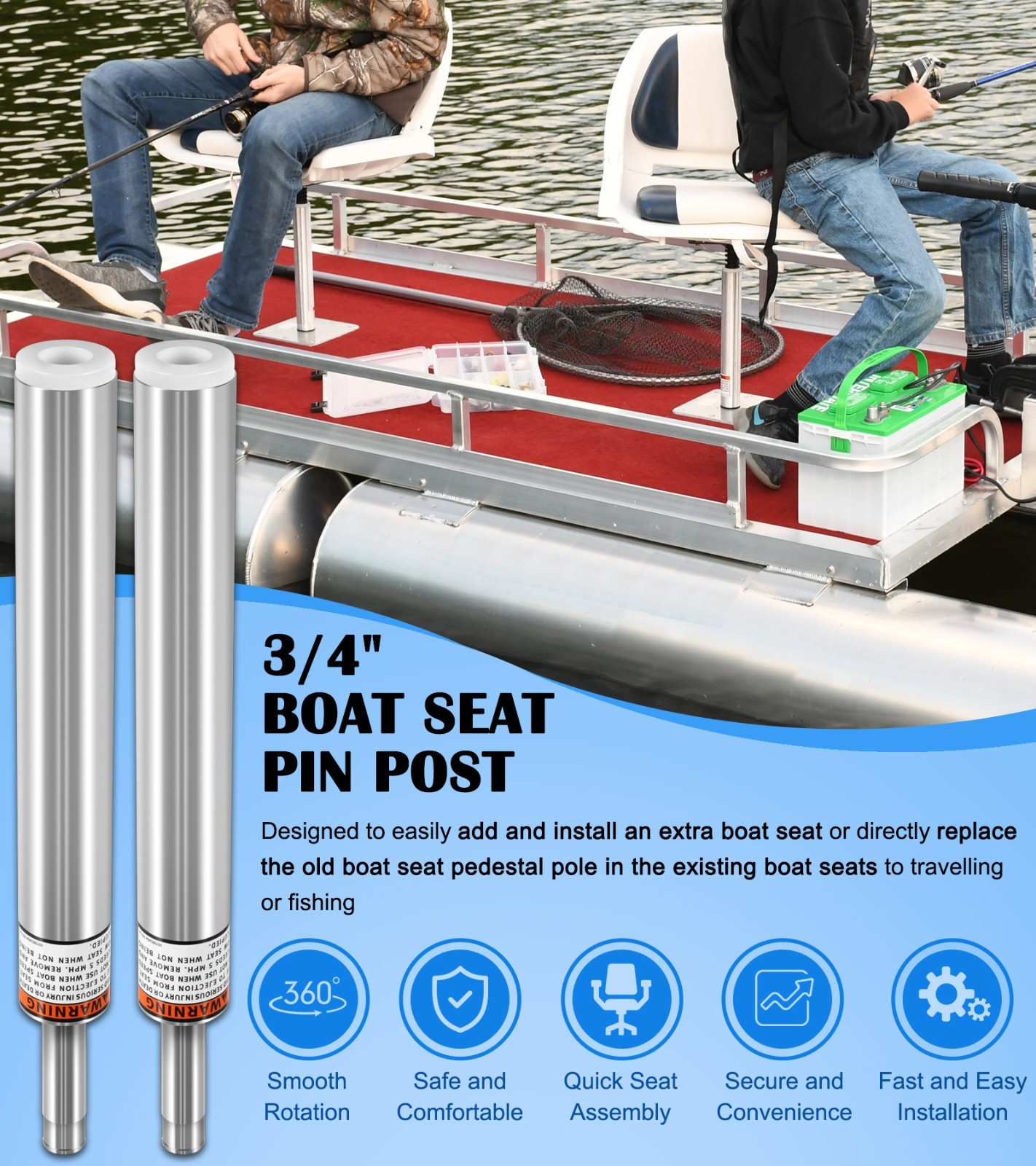 Feature 【Extremely Versatile】This SP-2114 Lock-in Boat Seat Pin Post features with 11" height, 1.5" exterior diameter, fits all 3/4 inch pin-type bases and most standard 7" x 7" marine boat seats base pedestal mount, such as Pontoon Boats, Bass Boats, Fishing Boats, Cruising Boats, Travelling Boats, Jon Boats, Round Boats, Deck, Dock, etc. It can be also combined with other boat seats and bases to meet you boating requirements. 2PCs SP-2114 Boat Seat Post for Boat Seat Pedestals & Bases, 11" Boat Seat Pole Feature 【Extremely Versatile】 This SP-2114 Lock-in Boat Seat Pin Post features with 11" height, 1.5" exterior diameter, fits all 3/4 inch pin-type bases and most standard 7" x 7" marine boat seats base pedestal mount, such as Pontoon Boats, Bass Boats, Fishing Boats, Cruising Boats, Travelling Boats, Jon Boats, Round Boats, Deck, Dock, etc. It can be also combined with other boat seats and bases to meet you boating requirements. 【High Performance】 This 3/4" boat seat mount pole perfectly fits in mounting holes and boat seat extension post pole, specially designed to add new seats and replace the existing seat system, helps you easily install additional boat seating, also perfectly replace the old boat seat pedestal pole in boat seats, providing you with an optimal boating seating solution for the best use of your boat. 【Optimal Design】 Features Slotted Design and Smooth 360 Degree Swivel with good load bearing capacity and perfect fit holes, prevents accidental detachment and separation for boat seat pedestal mount, 3/4" boat seat extension post and base. The non-threaded steel pin use 3/4" pin-type mounting and tight fit nylon bushing for secure installation. 【Comfort and Convenient】 This Lock-in Boat Seat Extension Post Pin Pole offers ideal seat height for comfortable sitting position to reduce fatigue, effectively improves your overall boat travelling or fishing experience, also makes operate the foot pedal trolling motor more safe and easy. 【Built-to-Last】 The Marine Boat Seat Pedestal Base Post Pole is made from top quality aluminum alloy with non-threaded steel pin for solid construction, high strength, prevent corrosion and rust, wear and impact resistance, can withstand all harsh marine conditions. High precision and hardness ensure long-term reliable service. 【100% Satisfaction Guarantee】 If you're not satisfied with this SP-2114 Marine Boat Seat Pedestal Base Post for Mounting Boat Seat, simply return it for getting refund in 30 days. While you have any questions about our products, please feel free to contact us and we will provide the best service. Item Specifics Brand LUAUTO Manufacturer Part Number SP-2114 Fitment for Boat Seat Pedestals & Bases, 11" Boat Seat Pole Color Silver Warranty 1 Year Custom Bundle No Type SP-2114 Boat Seat Post Number of pieces 2PCs Bundle Description No Single item or set Set Payment 1. Payment methods accepted: Payoneer . Our Payoneer account allows you to pay by credit card, debit card and your paypal balance. 2. We ship items to Your Ebay address .Please make sure your Ebay address is correct before you pay, cause it cannot be changed once the order shipped out. 1. All major credit cards are accepted through our secure payment processor Paypal. 2. We ship items to Your Paypal address .Please make sure your Paypal address is correct before you pay, cause it cannot be changed once the order shipped out. 1. All major credit cards are accepted through our secure payment processor Paypal. 2. We ship items to Your Paypal address .Please make sure your Paypal address is correct before you pay, cause it cannot be changed once the order shipped out. 1. All major credit cards are accepted through our secure payment processor Paypal. 2. We ship items to Your Paypal address .Please make sure your Paypal address is correct before you pay, cause it cannot be changed once the order shipped out. 1. All major credit cards are accepted through our secure payment processor Paypal. 2. We ship items to Your Paypal address .Please make sure your Paypal address is correct before you pay, cause it cannot be changed once the order shipped out. 1. All major credit cards are accepted through our secure payment processor Paypal. 2. We ship items to Your Paypal address .Please make sure your Paypal address is correct before you pay, cause it cannot be changed once the order shipped out. 1. All major credit cards are accepted through our secure payment processor Paypal. 2. We ship items to Your Paypal address .Please make sure your Paypal address is correct before you pay, cause it cannot be changed once the order shipped out. 1. All major credit cards are accepted through our secure payment processor Paypal. 2. We ship items to Your Paypal address .Please make sure your Paypal address is correct before you pay, cause it cannot be changed once the order shipped out.v 1. All major credit cards are accepted through our secure payment processor Paypal. 2. We ship items to Your Paypal address .Please make sure your Paypal address is correct before you pay, cause it cannot be changed once the order shipped out. 1. All major credit cards are accepted through our secure payment processor Paypal. 2. We ship items to Your Paypal address .Please make sure your Paypal address is correct before you pay, cause it cannot be changed once the order shipped out. 1. All major credit cards are accepted through our secure payment processor Paypal. 2. We ship items to Your Paypal address .Please make sure your Paypal address is correct before you pay, cause it cannot be changed once the order shipped out. 1. All major credit cards are accepted through our secure payment processor Paypal. 2. We ship items to Your Paypal address .Please make sure your Paypal address is correct before you pay, cause it cannot be changed once the order shipped out. 1. All major credit cards are accepted through our secure payment processor Paypal. 2. We ship items to Your Paypal addr