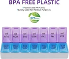 Welcome to Kumbala eBay Store Description: 100% Brand New Easy to Use: Date and AM/PM print and multi-colors distinguish each compartment, easy to identify each compartment. Large Capacity: 14 compartments, each compartment able to contain up to 10 capsules. (Vary by the sizes of capsules) Durable: superior quality ensures the durable of pill organizer. The lid covers close tightly all the time. BPA-Free Material: made of food grade plastic Convenient and Portable: the pill organizer only weighs 3 oz and 7.25'' x 3.25'' x 1.25'', Lightweight and travel-friendly design Included in this package: 2 x Pill Organizer Box Warranty & Customer Service : 30 days money back 60 days seller's guarantee, 24 Hours friendly customer service!
