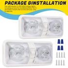 Features: Perfect replacement light for Car/RV/Trailer/Camper/Motorhomes/Marine Boats. It uses high-quality environmentally friendly plastic materials and the most advanced LED lighting technology, which is heat-resistant and corrosion-resistant. Convenient ON/OFF switch design with built-in 2-way switch, allowing you to use one or both sides of the lamp independently. Low power consumption and high energy efficiency, LED bulbs are designed to consume less power than traditional incandescent bulbs. This ensures that your RV's battery or power source is not overtaxed, extending its lifespan. Easy to install. It has 2 non-polarized two wires and comes with nuts and screws to hold it directly in place, suitable for smooth surface mounting. Specification: Material:Plastic Color: Clear Lens Voltage: 12V LED chip: 2835 Power: 8.5W Working life: 50000h Dc voltage: 0.71A Operating temperature: -20-60℃ Number of lamp beads: 48 Product color temperature: white light 4000~4500k Built in 3-way switch (to use one or both sides of light fixture) Fit for: Applications include 12 Volts DC, recreational vehicles Package Includes: 2 X Double Dome Lights (Mounting hardware Included)