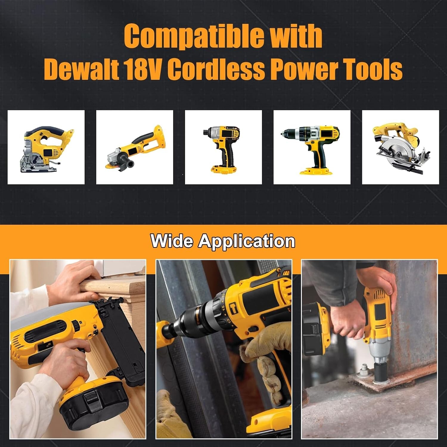 Product Description Advantages: Inbuilt with protection circuits to ensure battery safety 1.Over-charge protection 2.Over-discharge protection 3.Over-heat protection 4.Over-current protection 5.Short-circuit protection 6.High capacity circulatory function 7.Low Power Consumption IC Design 8.No Memory Effect 9.High Charge current Item Specification : 1.Type:Rechargeable replacement battery 2.Battery Voltage : 18V 3.Capacity :5500mAh/5.5AH 4.Battery Composition:NI-Mh 5.Compatible Band: For Dewalt 6.Warranty : 10 Year Warranty - 90Days Money back Replacement Part numbers: DC9096, DE9039, DE9095, DE9096, DE9098. DW9096, DW9095, DW9098 DE9503 Package included: 2X Battery for DEWALT 18V Power Tools DC9096 1X User Manual Compatible model : (use"Ctrl+F" to find your own PN & Model) - DC020, DC212, DC212B, DC212KA, DC212KB, DC212KZ, DC212N, DC213KB, DC330, DC330K, DC825B, DC825KA - DC330KA, DC330KB, DC330N, DC380KA, DC380KB, DC380N, DC385, DC385B, DC385K, DC390, DC825KB, DC920KA - DC390B, DC390K, DC390KA, DC390KB, DC390N, DC410, DC410KA, DC410KB, DC410N, DC411B - DC411KA, DC411KL, DC490B, DC490KA, DC495B, DC495KA, DC515B, DC515K, DC515N, DC520KA, DC925 - DC527(FlashLight), DC530KA, DC545K, DC546K, DC547K, DC550, DC550B, DC550KA, DC608B,, DW938, DC925KA - DC608K, DC616K, DC618, DC618K, DC618KA, DC628K, DC668KA, DC720KA, DC721KA, DC721KB, DC823KA - DC725KA, DC725KB, DC729KA, DC759, DC759KA, DC759KB, DC820B, DC820KA, DC820KB, DC821KA, DC823B - DC925KB, DC925VA, DC926KA, DC926VA, DC927, DC927KA, DC987, DC987KA, DC987KB, DC988, DW936K - DC988KA, DC988KB, DC988VA, DC989KA, DC989VA, DC998KB, DCD690KL, DCD760B, DCD775B, - DCD920B2, DCD925, DCD925B2, DCD940KX, DCD950B, DCD950KX, DCD950VX, DCD959KX,DW959K2 - DCD959VX, DCD970KL, DCD980L2, DCD985L2, DCF059KL, DCF826KL, DCG411KL, DW056, DW960,, DW938K - DW056K, DW056K2, DW056KS, DW056N, DW057K, DW057K2, DW057N, DW059, DW059B,DW059K2 - DW908(FlashLight), DW919(FlashLight), DW932, DW933, DW933K, DW934,DW934K2, DW934K2, DW934K2H, DW936 Warm Tips: 1. The battery must be FULLY charged before first use. 2. The battery is stored in a cool and dry place. 3. Do not Separation, extrusion, and impact. 4. Do not put battery into water and fire. 5. Keep away from children. Dear friends: If you have any question of the orders and products, please contact us through Ebay message. We will reply within one business day. About Us Welcome to our store! We are a professional worldwide wholesale company. High quality product , reasonable prices, excellent customer service and a reliable credit standing is our tenet.If you like our products, please add my eBay shop to your "My Favorites" list. All the products we are selling include factory warranty , don’t cover items that have been abused, burned and damaged in any form. Payment 1.We accept Paypal ONLY. It's a safer, faster and free way to pay! 2.Please pay the money within 7 days after the auction ended. 3.Non-Paying Bidders: Serious Buyer Only! Please place bid or "Buy it now" only if you agree the price and terms of the product and no argument after the auction end. And payment must be received within 7 business days of the auction close. We will report Non-paying buyer to eBay. Terms of sales: Shipping Handling time: 1 business day (Orders are not processed on weekends & holidays) Tracking information will be sent once item is shipped. 1.Our shipping rates include the cost of shipping, handling, packaging and related manpower costs. 2.All items will be shipped to buy's PayPal address. Please check your PayPal address is right. 3.We are not responsible for wrong or undeliverable address. We reserve the right to charge the shipping fee again for returned items due to wrong address. Returns All messages will be answered within 24 office hours. Please contact us either by clicking "contact seller" in the "purchase history" section or simply click "ask a question" at the bottom of this page. If you are unsatisfied with our item or service, please contact us before leaving any feedback. We are committed to resolve all issues in a friendly and satisfactory manner. We always reply to messages within 2 business days (off-duty at weekend). If you do not get a response from us, then please check your junk or spam mailbox. Contact Us Dear buyers,we appreciate your business, if you are satisfied with our service , please leave us a Positive feedback and rate the details of the transaction (Detailed Seller Ratings) with a " Pefect Stars ". If you have any concerns about your order,please contact us through eBay message or e-mail to resolve any issues before leaving a negative feedback or openin a dispute. We aim to provide best services and products in exchange your maximum statifaction. We will do our best to resolve your issue till your satisfaction. O ur working time is: 09:00 AM-18:00 PM(Chinese time from Monday to Saturday) .All emails will be answered within 24 hours except weekends and holidays On Jun 13, 2023 at 20:28:24 PDT, seller added the following information: On Oct 18, 2023 at 01:37:35 PDT, seller added the following information: On Nov 21, 2024 at 02:41:35 PST, seller added the following information: On Jul 8, 2025 at 19:53:01 PDT, seller added the following information: