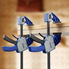 Features: High-quality Materials: The handle of our bar clamps is made of PA6+GF30% high-strength plastic, stronger and more durable than ABS. The slide bar is constructed from 45# carbon structural steel, ensuring long-lasting and crack-resistant performance 24-inch Large Jaw Opening: Our bar clamps for woodworking are ideal for various standard-sized woods. The 24-inch length provides users with more adjustment space during operation, resulting in precise positioning of the workpiece 340lbs Load Limit: These wood clamps for woodworking can easily handle various daily processing and assembly tasks, securely fixing to cut, join, and install wood, wood products (such as tables, chairs, cabinets), and steel materials Simple and Easy to Use: With automatic lock and one-button unlock, our F clamps allow for single-handed operation throughout the process, making the processing efficient and time-saving Clamping/Spreader Quick Converting: Our woodworking clamps can also be used as a spreader. You can quickly change the clamp to a spreader with the button. From precision clamping to solid reverse support, this versatile clamp has got you covered in any situation. Bar Clamps for Woodworking for Stable Clamp The PA6+GF30% plastic means the addition of 30% glass fiber to polyamide 6, enhancing the overall material strength and making the reinforced plastic harder and more durable than commonly used ABS. The 24-inch jaw opening of the bar clamps is designed to accommodate various standard-sized woods, providing users with more adjustment space during operation and ensuring precise positioning during the processing. Tackle any woodworking task with ease, thanks to the sturdy 340 lbs clamping force. Our wood clamps for woodworking are effortlessly secure to cut, join, and install wood products like tables, chairs, cabinets, and even steel materials. The automatic lock mechanism ensures a firm and stable grip on the workpiece, reducing the risk of the workpiece loosening or accidental sliding during clamping. The release button allows for quick and secure detachment of the workpiece, ensuring efficient and time-saving processing. The f clamps' button design is used instead of traditional knobs when changing to the spreader mode, as buttons provide a fixed depth and force, allowing for quick and precise joining without the wear and tear associated with knobs.