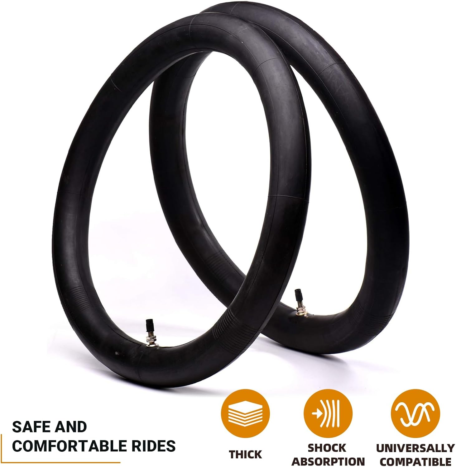 2.50/2.75-17” REPLACEMENT MOTORCYCLE INNER TUBES - Universal fit for most scooters and dirt bikes with 17-inch rims. Double-check your existing tire’s sidewall to confirm the inner tube size you’ll need. These tubes fit tires that are between 2.50 inches and 2.75 inches wide. COMPATIBLE INNER TUBE REPLACEMENT FOR DIFFERENT DIRT BIKE BRANDS AND MODELS - These inner tubes are compatible with most major motorcycle brand tires, including those designed for street use. Other compatible with brands/models include Honda’s Cub and Super Cub series, Honda C70, Coolster QG-214 X-M125, Kawasaki KDX80, and more. 2.75-17" TIRE INNER TUBES FOR 110CC, 125CC, AND 140CC, DIRT BIKES, MOPED, AND SCOOTERS - Aside from the models mentioned above, these inner tubes are also compatible with several dirt bikes, pit bikes, and motocross bikes with the listed engine capacities. Some of these bikes have tires with sizes stamped as either 2.50/2.75-17 or 70/100-17”. These inner tubes can also serve as a substitute for 2.25/2.50-17 tubes. PREMIUM QUALITY INNER TUBES FOR SAFE AND COMFORTABLE RIDES - Elevate your riding experience with our inner tubes. Made from premium-quality butyl rubber, these tubes offer unparalleled impact absorption and puncture resistance, ensuring a smooth and secure ride. Tailored for motocross and enduro applications, they guarantee both safety and comfort on every journey. PREMIUM QUALITY AFTERMARKET REPLACEMENT PARTS - We aim to provide you with the best shopping experience. Our line of replacement parts and accessories has undergone thorough in-house testing to ensure consistent quality. Unsatisfied with our product or service? Don't hesitate to contact our US-based customer service team. Product Description CAUTION: 1. WHEN REPLACING THE INNER TUBE, REFRAIN FROM USING SHARP TOOLS. EMPLOY ONLY DESIGNATED TOOLS FOR THE REPLACEMENT PROCEDURE. 2. THE PRIMARY PSI SAFETY RATING IS CONTINGENT UPON THE SPECIFICATIONS AND MODEL OF THE TIRE; THIS PRODUCT THE VALUE OF PSI IS PROVIDED FOR REFERENCE PURPOSES ONLY.