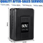 eBay Brand New | 2 Pack | Capacity:3000mAh | Type:Lithium-ion | Perfect replacement for 80V Max KB2580-06 KB580-06 KB680-06 KB280-06 Brand New | 2 Pack | Capacity:3000mAh | Type:Lithium-ion | Perfect replacement for 80V Max KB2580-06 KB580-06 KB680-06 KB280-06 DSANKE® OFFICIAL Ask a question Description Shipping Warranty About Us Description Brand Jialitt Battery Voltage 80 V Battery Type Lithium-ion (Li-Ion) Capacity 3000mAh / 3 Ah Color Black Condition Replacement Battery, Brand New Package Carton Warranty 5 Years Warranty + 60 Days Money Back Shipping Free shipping,24H Dispatch,1-6 days delivery Certificate CE PSE ROHS FCC ✔【Work Great as Original 80V MAX】 80V | Actual 3000mAh | A-Class Lithium-ion Battery Cell delivers up to 2X more run-time than others. Provides up to 35% more power than standard 80V Lithium-ion Battery. Same as the original size & function. ✔【Compatible with All 80V MAX & Seamless Fit】 100% Fits all original 80V chargers and Tools. (Ideal for MAX system.) ✚ Compatible with all 80V Battery KB2580-06 / KB580-06 / KB680-06 / KB280-06 ... ✔【4 LED indicators & Charge Quick】 Charging 40 minutes or less ✚ When you press the button, 4 LED indicators show battery charge and usage levels. ✔【Intelligent Protection】 Built-in circuit protection ensures both safety and stability. ✚ No memory effect, can be store, charged or discharged as needed without loss of capacity. (CE/ ROHS / PSE certificate.) Compatible with 80V MAX: [ For All 80V Chargers: ] KRC 280-06 / KRC 80-06 / KRC 30-06 ... [ 100% compatible with all 80V series Tools: ] Such as your 80V Mower (Weed eater) / Trimmer / Chainsaw / Blower / Hedge Trimmer and so on ... [ Replace for 80V Battery: ] KB2580-06 / KB580-06 / KB680-06 / KB280-06 ... What's Included: 2x 80V 3000mAh MAX replacement Lithium Ion Battery 1x Manual Note: 1. The battery must be FULLY charged before first use. 2. The battery is stored in a cool and dry place. 3. Do not Separation, extrusion, and impact. 4. Do not put battery into water and fire. 5. Keep away from children. Shipping Warranty About Us Shop related items