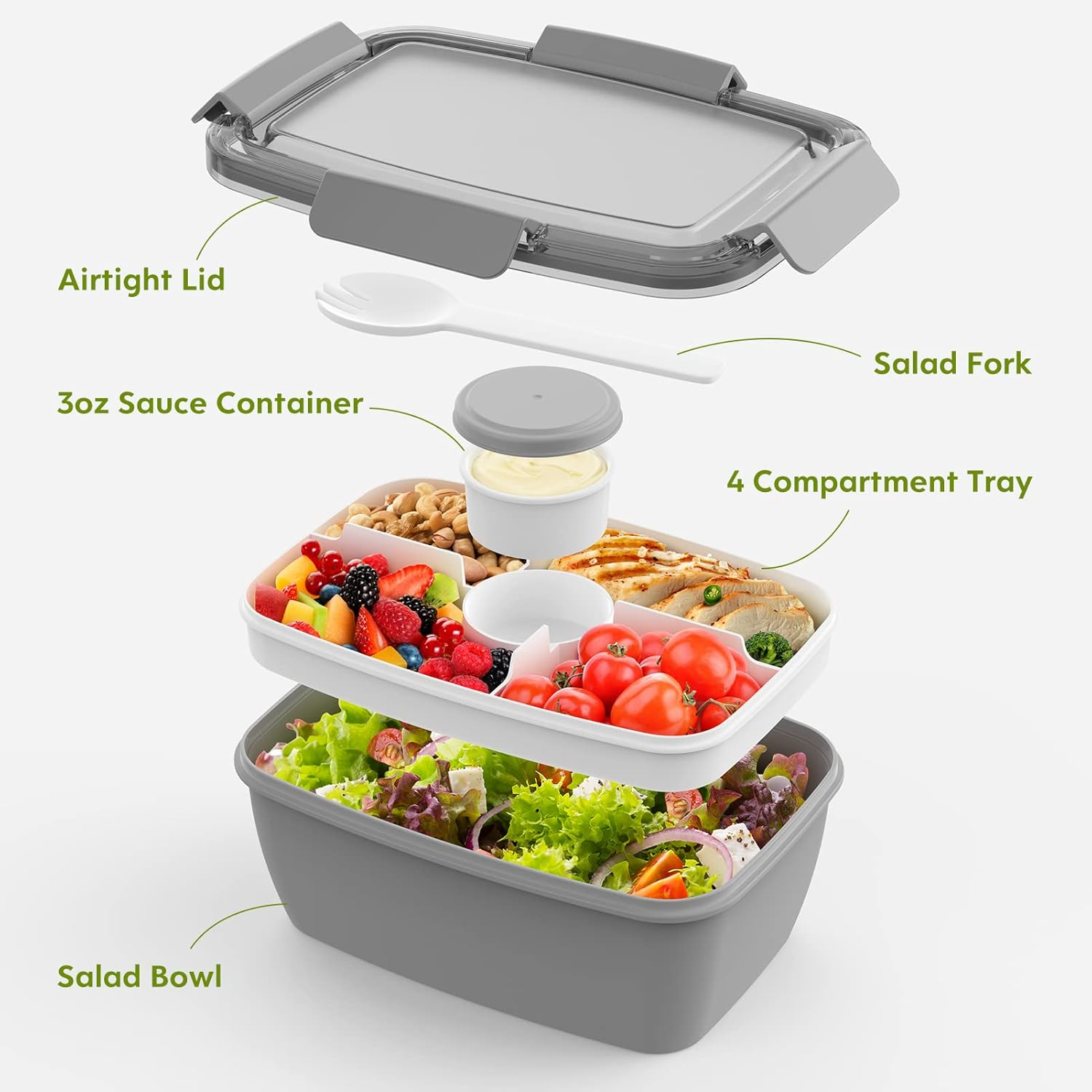 Store New Arrivals Add to Favorite View Feedback Contact Fast deliveries to the customer's home Quality customer service John Make the customers happy! 2Pack Salad Lunch Container, 68Oz Salad Bowls with 4 Compartments Tray,Leak Proof Lunch Box with Fork for Men,Women Bpa-Free Snack Container with Sauce Container for Dressings-Grey Description 4 Compartments to Keep Food Fresh - Get benefit from brilliant idea of the Dietitian,our Salad compartment lunch box match with 4 compartments and 1 separate salad dressings container that allows you to bring a range of different foods without them mixing together in a soggy Large Salad Lunch Container - 68-oz salad bowl is large enough to pack a balanced meal for any size of appetite from kids to adults. 2 large compartments with 5oz for meat as well as fruit. The small compartments with 3oz can be paired with snacks and nuts.It fits easily into your backpack or handbag, making it ideal for use in picnic, office,gym, school, travel, or wherever you want Food Safety Materials - For the health of kids and adults,our salad to go plastic container made of safety materials BPA free, durable, tasteless, non-toxic. It is microwave safe( please open and remove the lid while you microwave the food) freezer safe,dishwasher safe. (Compartments and lid need to be washed separately and cannot be placed in the dishwasher) Seal Ring & Tight Buckle to Reinforced Leak Proof - Come with silicone sealing ring and airtight lid.Store your salad fresh all the day.Unlike other bento boxes, Cherrysea bento salad container with 4 tight buckles to prevent accidental spills What You Get - 2 x salad container to go, 2 x dressings container, 2 x salad fork. Cherrysea customer service,if you have any question with our 68 OZ large capacity salad lunch container,please get in touch with us for a satisfied solution., we will help you ASAP Product Description Item model number SA Style Kids Capacity 2 Liters Number of Items 1 Pattern Solid Theme Grey Number of Pieces 2 Unit Count 1.7583 Fl Oz Number of Compartments 6 Material Plastic Age Range (Description) Kid Item Form Box Included Components 2 x salad container, dressings fork Closure Type Clip Item Weight 1.7 pounds Material Type Free BPA Free Special Feature Leak Resistant, Freezer Safe, Micro Color 2Pack-Grey Shape Fruit Recommended Uses For Product Travel, School, Picnic Product Dimensions 3.8"D x 6.5"W x 3.8"H Product Care Instructions Hand Wash Only, Dishwasher Safe Size 68OZ ABOUT US We offer the best prices around on high quality products. Our E-store includes media such as books, movies, music and games while offering electronics, toys, sporting apparel, clothing, tools, general home, garden items and more. SHIPPING We are always working hard to ensure your package arrives as soon as possible. Please understand that some factors like weather, high postal traffic, and the performance of shipping companies are outside of our control. We offer free shipping to the lower 48 states and ship within 2 business days of payment, usually sooner. We do not accept P.O. Boxes. Please provide a physical address. For shipping outside of the continental USA, we only use eBay's Global Shipping Program. The item is shipped to KY and then sent to the rest of the world. International customers are responsible for all duties and taxes. Continue to 'check out' to calculate costs for shipping the item to your country. Messages regarding eBay's Global Shipping Program MUST be directed at eBay EXCLUSIVELY. RETURNS We offer a 30-Day Return Policy on items in which you are not completely satisfied with. You have the option of a full-refund or an exchange of the item. No returns are available on items shipped outside of the USA PAYMENT We accept PayPal. CONTACT US This page content is yet to come Please ad us to your favorite seller and visit again later Thank You CUSTOMER SATISFACTION We try our very best to make sure every customer is completely satisfied. If there's a problem, message us! We're happy to help. WE ACCEPT