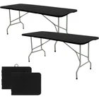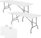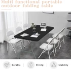 Set of 2 Folding Tab le 6 FT Lightweight Camping Table Portable Plastic Rectangular Outdoor Dining Table Steel Legs Fold-in-Half with Carrying Handle for Indoor,Picnic,Party,Wedding,Events Product Dimensions 70.9"D x 27.6"W x 29.1"H Maximum Weight Recommendation 300 Pounds Color White, Black Recommended Uses For Product Meeting, Accent, Camping, Dining, Displaying About this item Portable Folding Table: The folding table adopts a half folding design, which can be placed in any small space when idle, such as under the bed, trunk, showcase, etc. Moreover, the folding table has a built-in handle, making it easy to transport to any desired place at any time. A set of two 6 FT Folding Tables: You will receive two heavy-duty 6FT folding tables, the measuring of expanded size: 71" L x 27" W x 29" H,folded size: 35.4" L x 27.5" W x 3.5" H. The tabletop of the table is made of high-density polyethylene material, and the support and legs of the table are made of high-quality metal steel, which is not only sturdy and durable, but also structurally stable and not easy to shake. Easy to Use: This picnic table can be used directly without assembly, simply open or fold the table legs to easily complete the installation or folding of the table. The built-in safety lock of the folding table can secure the table from folding or opening. Multi Functional Outdoor Table:The surface of this folding table is smooth and sturdy, easy to wipe, and the table corners are designed with rounded corners for safety and reliability. The anti slip covers on the four table legs prevent the table from shaking freely and protect the floor from scratches. Each table can accommodate 4-8 people, making it the best choice for outdoor camping, indoor activities, picnics, offices, birthday parties, banquets, weddings, craft fairs, kitchen table, and other events.