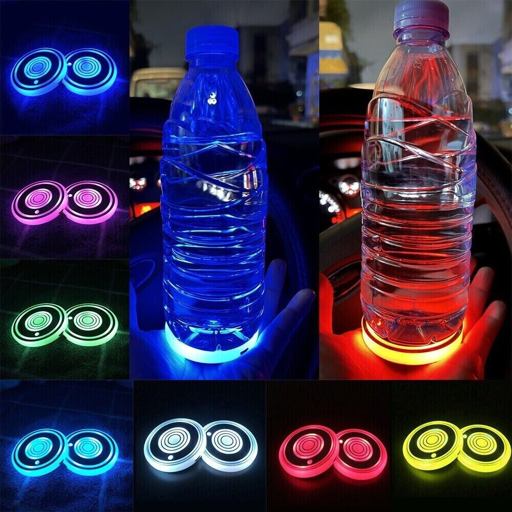 Description: Note: there is a thin protective film on the surface needed to torn off before use. Feature: 3 Modes: Colorful mode, breathing mode, gradient mode. 7 Colors: White, blue, red, green, yellow, pink, ice blue for choose. Vibration Sensor: In light,in the dark place,without vibration,15 seconds after automatically extinguished. Three halo design: enhances the edge brightness and perspective strength, and perfectly displays the cool light of smart luminous coasters. Easy to Use: Pressing the button on the back of the light once can change a color or mode. Long press to turn on or down the lights. USB Charging: The battery capacity of this product is 200mAh,it can be charged for 2 hours and can be used for about 15 days. Specification: Material: Acrylic + LED Size: 68mm (Approx)/2.7inch Installation Position: Water Cup Holder Color:Switchable Blue, Red, White, Yellow, Green, Pink, Ice Blue Monochrome Package Includes: 2x Car Cup Pad Light 1x USB Charging Cable
