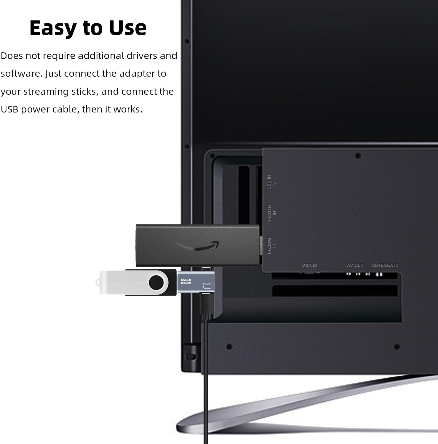 【Compatibility】The micro USB OTG adapter is designed for Fire TV Stick, Fire TV Stick 4K, Fire TV Stick 4K Max, Fire TV Stick Lite, Chromecast, other streaming sticks and more host devices with micro USB. 【Expansion Capability】Use this micro USB OTG adapter to add keyboard, mouse, U disk, USB flash drive, USB card reader, USB ethernet adapter and other USB peripherals to your streaming sticks or micro USB host device. 【Easy to Use】This adapter does not require additional drivers and software. Just connect the adapter to your streaming sticks or micro USB host device, and connect the USB power cable, then it works. 【Please Note】When you use it on a Micro USB phone or tablet, it only supports OTG and cannot charge your phone or tablet, but can power streaming sticks and USB peripherals. 【What you'll get】Micro USB OTG Adapter *2, Any questions, please feel free to contact us, we will reply you within 24 hours. Product Description Unique Design 90 Degree Left Angle: The adapter adopts a 90 degree left angle design, which is very suitable for expanding the capacity of the Fire Stick streaming series, allowing you to easily use more streaming applications. Small and Portable: The adapter is made of high-quality aluminum alloy, compact and durable. With Power Port: It can provide power for streaming sticks and USB peripherals, but can NOT charge any smart phone or tablet. Compatibility: The micro USB OTG adapter is designed for Fire TV Stick, Fire TV Stick 4K, Fire TV Stick 4K Max, Fire TV Stick Lite, Chromecast, other streaming sticks and more host devices with micro USB. Expansion Capability: Use this micro USB OTG adapter to add keyboard, mouse, U disk, USB flash drive, USB card reader, USB ethernet adapter and other USB peripherals to your streaming sticks or micro USB host device. Easy to Use: This adapter does not require additional drivers and software. Just connect the adapter to your streaming sticks or micro USB host device, and connect the USB power cable, then it works. Please Note: When you use it on a Micro USB phone or tablet, it only supports OTG and cannot charge your phone or tablet, but can power streaming sticks and USB peripherals.