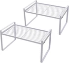 MULTIFUNCTIONAL: These cabinet shelves can be used individually or stack one to the other to become a 2 tiers shelves to organize your items. They are great organizers for your cabinet, pantry, cupboard, closet, drawer or counter top in kitchen, bathroom, bedroom and under the sink. With the mesh design board, it can be a drying rack for dishes, bottles, plates. EXTRA SPACE: These stackable cabinet shelves maximize storage efficiency, providing more spaces as a riser which allows you to use the upper space. The added storage space helps organization and tidiness. All the wee little bottles, tins, vials, pans and a myriad of other kitchen utensils could go underneath, the middle or the top of the cabinet shelf, reaching with ease. STURDINESS and RELIABILITY: Made with heavy duty metal that built to last. With the well-finished coating on so won’t get rusty and smooth to the touch. The bottoms of the stand frame with non-slip pads attached so it will stay securely and won’t slip off the surface. They are an absolute beautiful addition to your home or office. MAX UTILITY: It can be a shelf or rack to serve your organizing purpose. It’s a great organizer for dishes, bottles, cans, pots, pans. It’s also a rack for snacks, spices, seasonings, fruits and so on. It helps to make spaces more efficient and tidier. SPECIFICATION: Individual one shelf: 13 * 8.3 * 7.3 inches. Stacked two shelves: 13 * 8.3 * 14.6 inches. Loading Capacity: 40lbs. Manual and assembly parts includes in the package. You’re welcome to contact us if you have any problems with our products. Product Description Shantton Kitchen Cabinet Shelf 2Pack Stackable-Great Storage Idea for Your Home Imaging use these cabinet shelves to organize your messy house. Every disorganized items will be placed in order and can be reached easily ever after. They are delicately designed to be not only a organizing unit but also a modern decoration to your home. Their paint of cover are massy, specially-made paint makes matt white and matt black, turning them to be a special one. Great gift for Thanksgiving Day, Boxing Day, Cyber Monday, Christmas, Mother's Day, Black Friday. Prodcut Name: Cabinet Shelf / Cupboard Organizer / Countertop Organizer / Storage Stand / Space Riser Specification: Standard version: One Shelf - 13 * 8.3 * 7.3 inches , Stacked Two Shelves - 13 * 8.3 * 14.6 inches Tall Version: One Shelf - 13 * 8.3 * 9.5 inches , Stacked Two Shelves - 13 * 8.3 * 19 inches 1 Easy Installation 2 Non-Slip 3 Quality Coating 4 Great Loading-Capacity Uses: Cabinet, Pantry, Cupboard, Kitchen, Bathroom, Under sink, Bedroom, Office desk, Countertop, Table, Dish, Bottle, Cup, Spice, Pot, Plate, Book, Shoe, Accessories Cabinet Shelves with different Sizes Add to Cart Add to Cart Add to Cart Add to Cart Add to Cart Add to Cart Add to Cart Customer Reviews 4.7 out of 5 stars 2,541 4.7 out of 5 stars 2,541 4.7 out of 5 stars 2,541 4.7 out of 5 stars 2,541 4.7 out of 5 stars 2,541 4.7 out of 5 stars 2,541 4.7 out of 5 stars 2,541 Price $29.99 $ 29 . 99 $30.99 $ 30 . 99 $33.99 $ 33 . 99 $35.99 $ 35 . 99 $35.99 $ 35 . 99 $36.99 $ 36 . 99 $38.99 $ 38 . 99 Color White & Black White & Black White & Black White & Black White & Black White & Black White & Black Seperate Unit Size L13" W8.3" H7.3" L13" W8.3" H9.5" L16'' W8.3'' H7.3'' L16'' W8.3'' H9.5'' L13.1" W10.6" H7.3" L13.1" W10.6" H9.5" L16.1'' W10.6'' H7.3'' Stacked Unit Size L13" W8.3" H14.6" L13" W8.3" H19" L16'' W8.3'' H14.6'' L16'' W8.3'' H19'' L13.1" W10.6" H14.6" L13.1" W10.6" H19" L16.1'' W10.6'' H14.6'' Stackable ✔ ✔ ✔ ✔ ✔ ✔ ✔ Loading-Bearing 40LBS 40LBS 40LBS 40LBS 40LBS 40LBS 40LBS