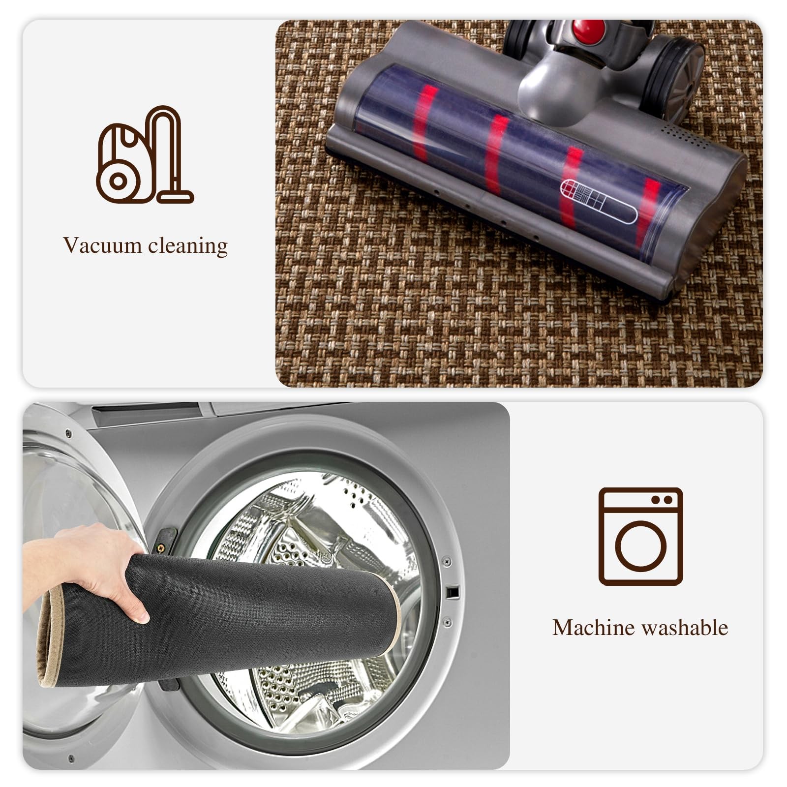Non Skid Washable Kitchen Rugs and Mats Machine Washed and Dried Package include: Kitchen Rugs Set of 2 Kitchen Mats Size: Immerse your kitchen in sophistication with our two-piece mat set. Featuring sizes of 17.7"x27.5" and 17.7"x59", and provide extra large areas for standing in laundry room, kitchen, office, in front of sink or any other high-traffic indoor space. Non Skid Kitchen Rugs and Mats: Premium polyester fiber and rubber backing material we selected to use in the kitchen rugs and mats. Textured bottom design keeps the standing mat in place and prevents slipping. Easy to Clean: The anti fatigue kitchen mats are easily cleaned when water, stains, or oil splashes on the mat. Simply wipe off the dirt with a damp cloth or hand-held vacuum as needed, and the mat will remain looking new. When not in use, simply roll them up for space-efficient storage. Comfort & Resilience: This kitchen mat for home is constructed with thousands of thread weave shags, sink your toes into the comfortable of a kitchen floor mat from threshold. Our mats provide a cushioning that reduces back and spine pain when standing and relieves fatigue caused by standing for long periods. Wide Variety of Uses: With three colors to choose from, you can effortlessly match your space's style. And pets love to sleep and play on these warm, soft mats. It's a perfect gift for friends and family!