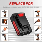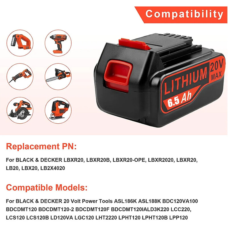 Product Description About US: We focus on designing and manufacturing varieties of Power Tool batteries with high quality and competitive price. We will do our best to serve you! (* The battery capacity and whether a charger should be included is up to you) (* The battery capacity and whether a charger should be included is up to you) (* The battery capacity and whether a charger should be included is up to you) Item Features: 1.CE Certified, and Tested by Manufacturer to Match OEM Products 2.Tested to Work with Original Charger. 3.Overload Protection, Long-lasting Performance and Durable 4.100% New Battery, Never used, Full Compatible with Orginal Black + Decker Model. 5.All-Weather Performance. Delivers fade-free power in extreme jobsite conditions 6. Good After Service. We provide a wonderful shopping experience, if you have any problems please contact us . We will solve your problem within 24 hours. Item Specifications: 1.Voltage: 20V 2.Capacity: 6.5Ah/8 .0Ah 3.Battery Composition:Lithium-Ion (Li-Ion) 4.Compatible Band: For Black & Decker 5.Material: made with the high quality materials 6.Warranty: 10 Year Warranty + 60 Days Money Back Replacement Part Numbers: For LB20, LBX20, LBXR20, LB2X4020, LSW20, LCS120, LDX120C, LLP120, LBXR2020-OPE, LST220, LCS1620, LDX220, LBXR20-OPE Compatible With:(use"Ctrl+F" to find your own PN & Model) For Black & Decker BDCDMT120 For Black & Decker CHH2220 For Black & Decker LDX120C For Black & Decker LDX120SB For Black & Decker LGC120 For Black & Decker LHT2220 For Black & Decker LST120 For Black & Decker LST220 For Black & Decker LST300 For Black & Decker LSW20 For Black & Decker SSL20SB For Black & Decker SSL20SB-2 LHT120, LPHT120, LSW120, LPP120, LCS120, LLP120, LGC120, SSL20SB-2 ASL186K, ASL188K, BDCDMT120, CHH2220, EPL188KB Battery Charger LCS1620 for Black and Decker 16V 20V Lithium Ion BatteryITEM SPECIFICATION: 1. Product Type: Replacement Battery Charger 2. Input: 100V-- 240V 3. Output: 20V 0.5Ah 4. Efficiency: 85W 5. Compatible with: Lithium Battery Charger Batteries For Black and Decker 16 V 20V 6. Suitable for Battery: Black and Decker 16V 20V Cordless drill, blower, saw, tools Lithium Ion Battery LBXR20 LB20 LBX20 LST220 LBXR2020-OPE LBXR20B-2 LB2X4020 LBXR20-OPE LBX4020 BL1514 LBXR16.LED INDICATOR:Standby = Green Light Solid Charging = Green Light Flashing Fully charged = Green Light Solid Battery Defective = Red Light Flashing Fast Temperature Anomaly = Red Light Flashing SlowPACKAGE INCLUDED:1Battery Charger for Black & Decker 16V 20V Lithium Battery (Batteries not included) Features: COMPATINLITTYWorks well on all Black and Decker 16V 20V Lithium Ion Batteries. Sucessfully testing on all Black and Decker 16V 20V Lithium Ion Batteries. WIDELYSuitable for 16V 20V Lithium Ion Batteries LBXR20 LBXR20-OPE LB20 LBX20 LBX4020 LB2X4020 LBXR2020-OPE LB2X3020-OPE. (Warm Tips: Not work with NiCad & NiMh Battery. Not compatible with vacuum model.) LED INDICATORLED temperature gauge lighting, indicator lights that show the status as batteries are charged and maintained. The maintenance mode automatically optimizes charging for longer battery life. Full charger time is 7 - 10 hours as original. EASY TO CARRYOur split charger has the characteristics of small size, light weight, easy to carry, etc. The DC head connection part on the charger can be disassembled for easy storage. RELIABILITYLCS1620 battery charger comply with FCC RoHS and CE security testing standards.Product quality and safety are more guaranteed. Any question about charger, feel free to contact us, we will try our best to promise you an enjoyable shopping experience. Product Details: Product Dimensions: 3.15 x 2.76 x 2.36 inches Item Weight: 3.53 ounces Item model number: LCS1620 Batteries: 1 Lithium ion batteries required. Date First Available: March 10, 2020 Manufacturer: Xyuan Tech ================================================================= Replacement PN: it for Black and Decker 20V MAX Lithium battery : LBXR20, LBXR20B, LBXR20-OPE, LBXR2020, LBXR20, LB20, LBX20, LB2X4020, LB2X4020-OPE Fit Battery Model: For Porter Cable 20-Volt MAX Lithium-Ion Battery: PCC680L, PCC681L, PCC682L, PCC685L, PCC685LP, PCC699L, PCC680, PCC685 For Black+Decker 20-Volt MAX Lithium-Ion Battery: LBXR20, LBXR2020, LBXR2020-OPE, LBX4020, LB2X4020, LB2X4020-OPE, LB20, LBX20, LBXR2520 mini charger Charges all for Black and Decker 12V-20V Lithium Ion Batteries. Compatible with Black and decker 12V 20V lithium battery LBXR20 LBXR20-OPE LB20 LBX20 LBX4020 LB2X4020 LBXR2020-OPE LB2X3020-OPE. LED light indicator shows the Battery charge status,full charger time is 7 - 10 hours as original. The maintenance mode automatically optimizes charging for longer battery life. Product Specifications: 1.Product Type: Replacement Battery charger 2 Compactible with: 20V Li-Ion Battery Charger Batteries For Black and Decker 20V 3.Input: 100V--240V 4.Output: 20V Compatible With: for Black and Decker 20V Li-Ion Batteries for Black & Decker 20v lithium battery LBXR20 LBXR20-OPE LB20 LBX20 LBX4020 LB2X4020 LBXR2020-OPE LB2X3020-OPE LBXR20BT * Any problems please contact us at any time before leaving a negative/neutral feedback. Many thanks to you! About Us Welcome to our store! We are a professional worldwide wholesale company. High product quality, reasonable prices, excellent customer service and a reliable credit standing is our tenet.If you like our products, please add my eBay shop to your "My Favorites" list. All the products we are selling include factory warranty , don’t cover items that have been abused, burned and damaged in any form. Payment We accpet payment via PayPal , E-wallet , some Credit Card , Direct Debit and Other specific payment methods. Import duties,taxes and charge are not included in the item's price or shipping cost.These charges are the buyer's responsibility. Please check with your country's customs office to determine what these additional costs will be prior to bidding or buying. Insurance i