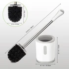 toilet brush Compact Size:The holder measures 4.1" x 3.3" x 5.1", Small Size holder Space Saving for Storage and Organization, Easy to hide to ensure the beauty of the bathroom. Hidden Toilet Scrubber: Toilet brush with plastic cover hides the brush head inside the base from view, keeping it beautiful. Durable Bristles: toilet bowl brush and holder with Sturdy-bristled deep clean the toilet, such as under the rim, inside the pipe. The brush sits in its own holder and easy to store. Stainless steel and plastic handle: forbidden to soak in toilet cleaner to avoid corrosion and rust. After use, rinse with clean water and dry in time for maintenance. Hollow base: High-quality ABS thickened toilet cleaner brush base,The compact size doesn't take up too much space, and the elegant design matches every bathroom style.