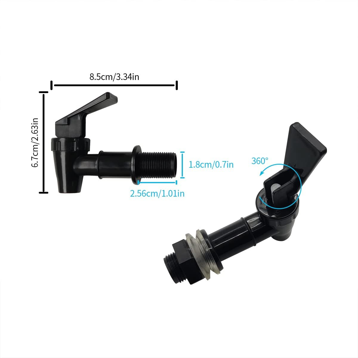 2 Pcs Replacement Cooler Faucet, Reusable Spigot Spout 8 Piece Set, Black Product Details Brand: zhuohai Recommended Uses For Product: Kitchen Mounting Type: Deck Mount Finish Type: Unfinished Material: Plastic Color: Black Number of Handles: 2 Included Components: Water Supply Lines, Instruction Manual Hole Count: 1 Special Feature: Easy to use Handle Type: Lever Installation Type: Single Hole Model Name: 16620539031 Number of Pieces: 2 Handle Material: Plastic Spout Reach: 18 Millimeters Handle Location: Deck Mount Spout Design: Traditional Curve Is Electric: No Manufacturer: zhuohai Item Weight: 1.76 ounces Package Dimensions: 5 x 4.69 x 1.18 inches Item model number: 16620539031 Size: 8 Piece Set Finish: Unfinished Special Features: Easy to use Batteries Included?: No Batteries Required?: No Brand: zhuohai Recommended Uses For Product: Kitchen Mounting Type: Deck Mount Finish Type: Unfinished Material: Plastic Color: Black Number of Handles: 2 Included Components: Water Supply Lines, Instruction Manual Hole Count: 1 Special Feature: Easy to use Food-grade safe material: The faucet of the drinking fountain is made of high-quality plastic and silicone material, which is non-toxic, tasteless, safe and reliable, and you can use it with peace of mind. Use for:Suitable for most common standard size water bottles, kettles, water dispensers, glasses, jars, cold water beverage dispensers, filtered water dispensers, fruit buckets and ice tea brewers. Advantages: The thread is clear, it is not easy to loosen after tightening, will not be easily broken, has a leak-proof function, has a good sealing performance, and is clean and hygienic. Size details:The Outer Size is 3/4 inch(18mm), Shaft Length 1 inch ,Fit into 3/4" hole. Easy to use: Push up, this faucet will remain open, very easy to operate, suitable for the elderly and children.