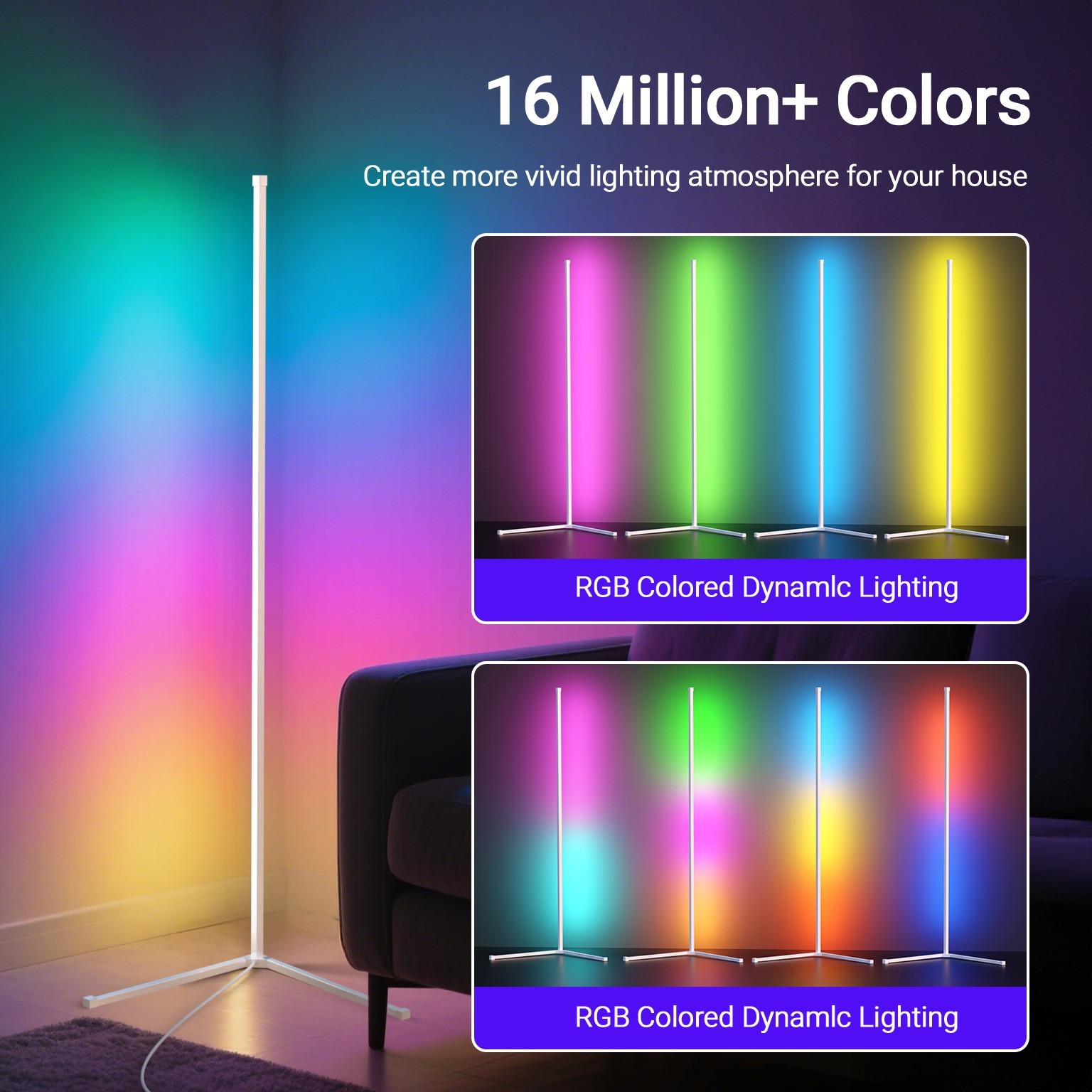 About this item Colorful LED Lights: Tyute floor lamp offers a wide range of colors to suit your mood and preference. Choose from over 16 million vibrant colors or adjust the brightness to create the perfect ambiance for any room in your home. Smart Control: Easily control your led floor lamp with the included remote or through a dedicated smartphone app. You can change colors, adjust brightness, and set timers all from the palm of your hand, making it convenient and user-friendly. Music Sync Function: Enhance your entertainment experience with the lamp's music sync feature. The colors and brightness of the lamp can change in rhythm with your favorite music, creating a dynamic and immersive atmosphere for parties, movie nights, or relaxing evenings. Modern and Sleek Design: The corner lamp's minimalist design fits seamlessly into any modern home decor. Its slim and stylish profile makes it a perfect addition to living rooms, bedrooms, or any space that needs a touch of color and elegance. Multi-Application: Perfect for various settings, this corner light can be used in living rooms, bedrooms, offices, and even in entertainment areas. Its wide range of colors and adjustable brightness make it ideal for any occasion, from relaxing evenings to lively parties.
