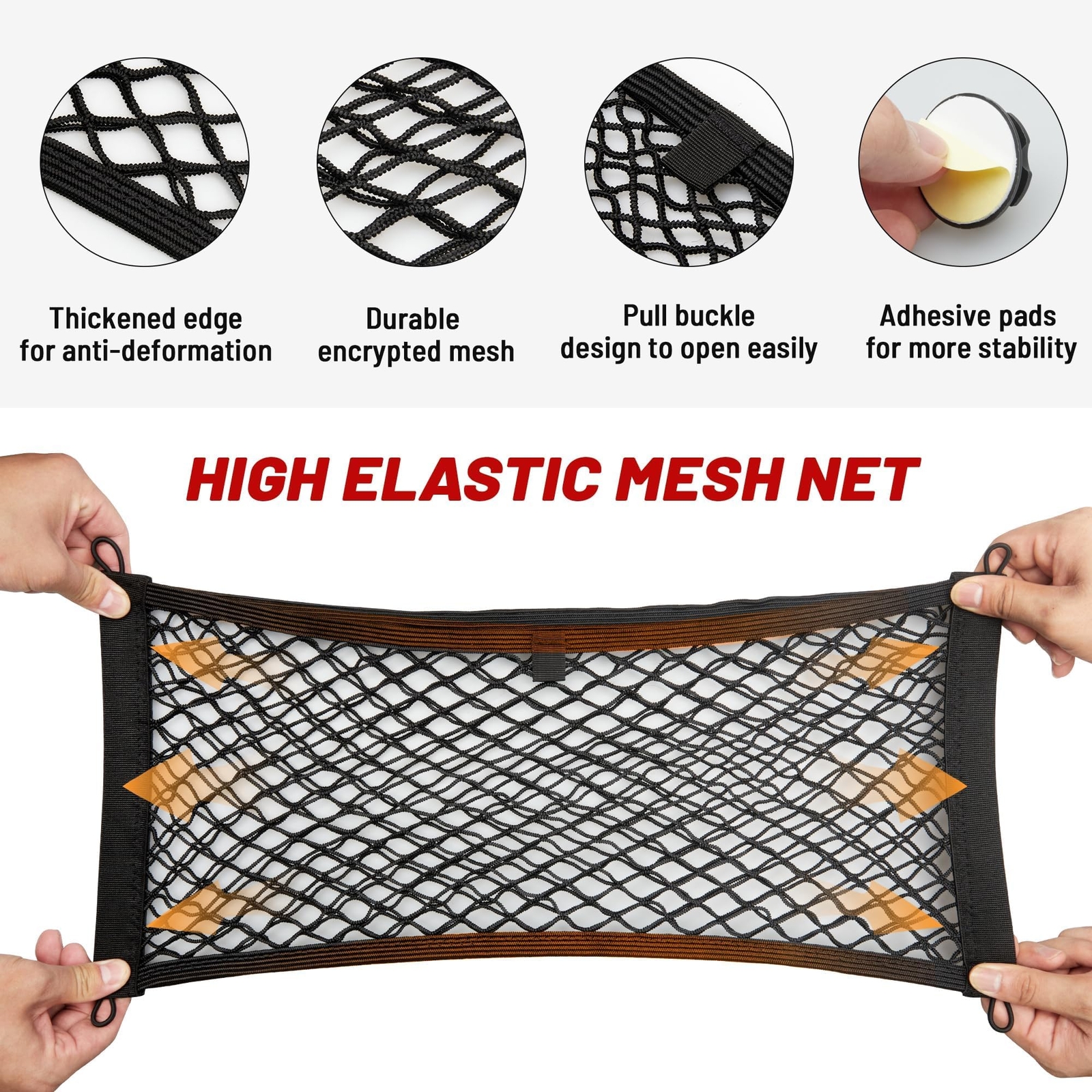 Universal Cargo Net Pocket Elastic Netting Car Mesh Pouch for Trunk RV Boats Home Cargo Storage with Screws and Hooks (21.7'' x 9.8'') Space Organizer: With the size of 21.7*9.8 inch, this cargo mesh pocket keep stuff such as toys, umbrellas, and water bottles inside away from rolling around during a long bumpy drive Premium Material: Car pocket net is made of high-quality nylon, durable and practical; Reinforced stitching edge and encrypted mesh enable the cargo net pouch not easy to deform when using; Elastic rubber bands offer much flexibility but not easy to sag Durable and Flexible Installation: Just install provided hook in any flat surface and hook to the cargo net bungees; Adhesive pads on back of hooks will help more sturdy fixing; NOTE: Holes drilling are required for stable installation Universal Fitment: The universal mesh cargo nets has a wide scope of application, fit with most RV, Boat, Van, SUV, Car; Allow you to store a lot of small items and saving space in wherever you want, such as home, truck, boats, especially in car Application Scene: Universal cargo net can be install on car/SUV seat back, RV wall for bottles, small purse bag, phones or pads, etc; Install on kitchen wall, bedroom door, bathroom wall for cloth, toys, note books etc; Install on boat wall, trailer wall for tools or daily items This Small Mesh Cargo Net prevent items from rolling around when in a long bumpy drive. Keep room and storage area organized and neat. Made of high-quality nylon for durability and practicability. Leading construction makes it not easy to deform and offers flexibility. Adhesive pads enhance stability and offer convinient installation. Widely used to storage or organize many small items in car, RV, boat. Shipping We offer FREE shipping on all orders! We ship within Three business days of payment, usually sooner. We use a selection of shipping services such as UPS, FedEx, USPS etc. We only ship to the lower 48 states, no APO/FPO addresses or PO Boxes allowed. Local pickups and combined shipping options are not provided at this time. Return You can return a product for up to 30 days from the date you purchased it. Any product you return must be in the same condition you received it and in the original packaging. Please keep the receipt. Payment We accept payment by any of the following methods: PayPal Please pay as soon as possible after winning an auction, as that will allow us to post your item to you sooner! Feedback Customer satisfaction is very important to us. If you have any problem with your order, please contact us and we will do our best to make you satisfied. Contact Us If you have any queries, please contact us via ebay. We usually respond within 24 hours on weekdays. Please visit our eBay store to check out other items for sale! Thank you for shopping at our store.