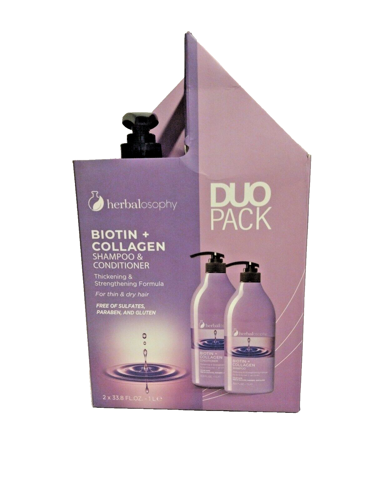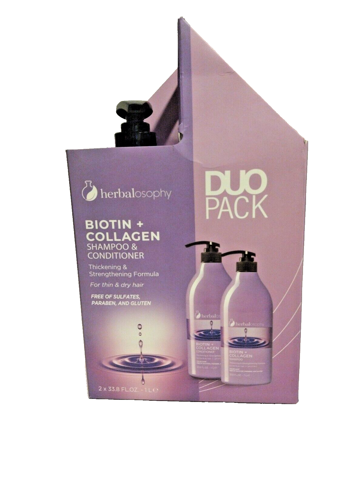 HERBALOSOPHY BIOTIN COLLAGEN Thicken Strengthen SHAMPOO CONDITIONER 33.8 oz.