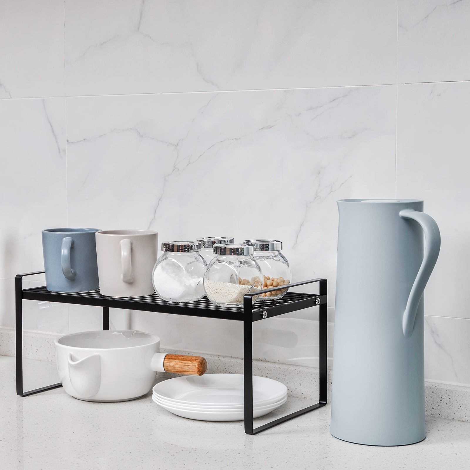 What an incredible organizer for cabinet,pantry, cupboard, kitchen countertop, bathroom, bedroom, living room! Itprovides you extra space, allowing you use upper space efficiently. Making yourhome become a tidy, organized space. Product Name: Cabinet Shelf / Storage Shelf / PantryOrganizer Material: Metal Features: Stackable Mesh Design Non-Slip Heavy Duty Rust-Resistant Storing: Dish, Plate, Bottle, Can, Jar, Spice, Pot,Cup MULTIFUNCTIONAL: These cabinet shelves can be used individually or stack one to the other to become a 2 tiers shelves to organize your items. They are great organizers for your cabinet, pantry, cupboard, closet, drawer or counter top in kitchen, bathroom, bedroom and under the sink. With the mesh design board, it can be a drying rack for dishes, bottles, plates. EXTRA SPACE: These stackable cabinet shelves maximize storage efficiency, providing more spaces as a riser which allows you to use the upper space. The added storage space helps organization and tidiness. All the wee little bottles, tins, vials, pans and a myriad of other kitchen utensils could go underneath, the middle or the top of the cabinet shelf, reaching with ease. STURDINESS and RELIABILITY: Made with heavy duty metal that built to last. With the well-finished coating on so won’t get rusty and smooth to the touch. The bottoms of the stand frame with non-slip pads attached so it will stay securely and won’t slip off the surface. They are an absolute beautiful addition to your home or office. MAX UTILITY: It can be a shelf or rack to serve your organizing purpose. It’s a great organizer for dishes, bottles, cans, pots, pans. It’s also a rack for snacks, spices, seasonings, fruits and so on. It helps to make spaces more efficient and tidier. SPECIFICATION: Individual one shelf: 16.1 * 10.6 * 7.3 inches. Stacked two shelves: 16.1 * 10.6 * 14.6 inches. Loading Capacity: 40lbs. Manual and assembly parts includes in the package. You’re welcome to contact us if you have any problems with our products.