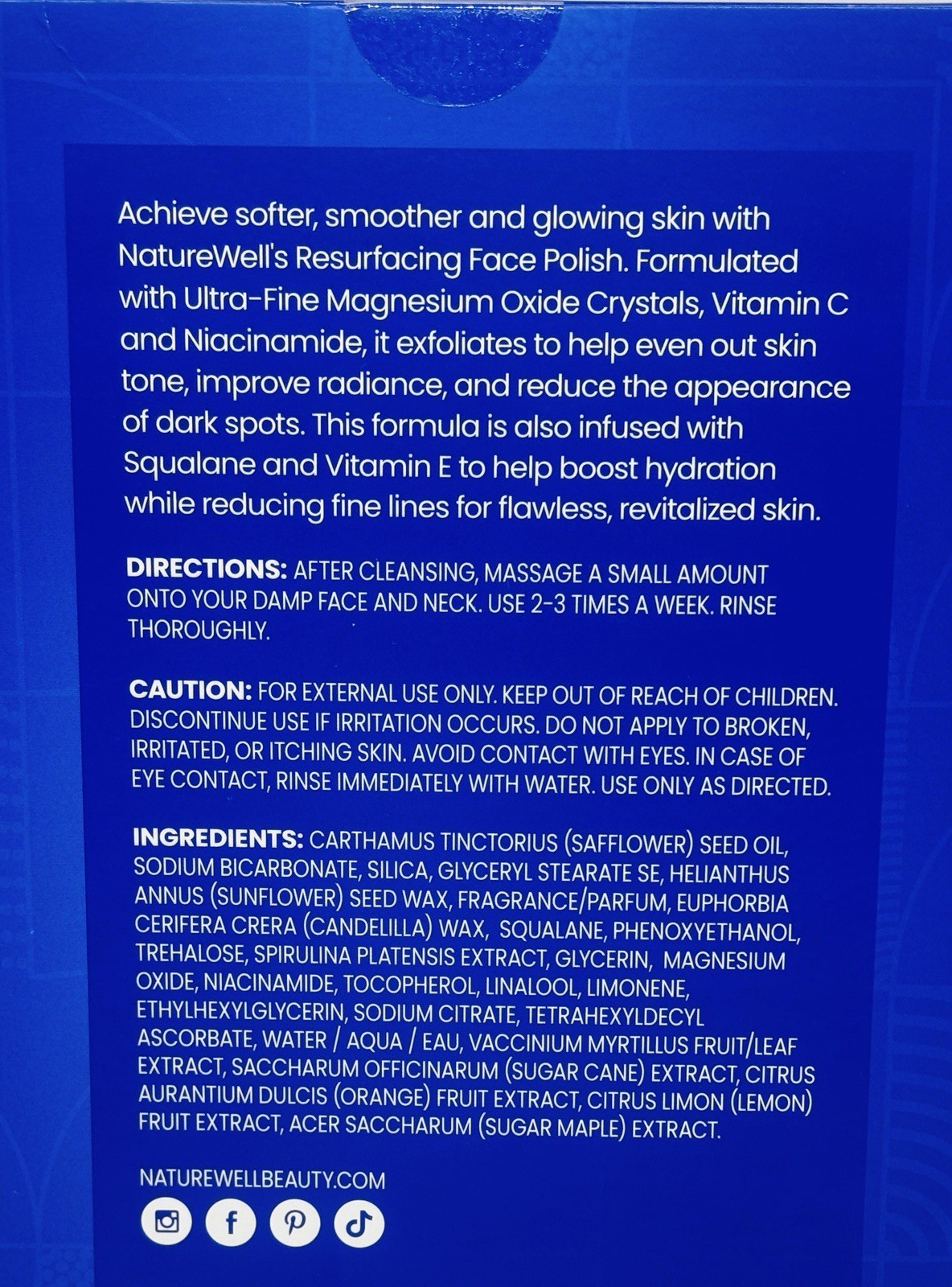 NATURE WELL Resurfacing Ultra-Fine Face Polish, Non-Abrasive Vitamin C & Niacinamide Facial Exfoliator Scrub For Radiant Skin, Revitalizes & Evens Skin Tone, Boosts Hydration, 2.3 Oz Each (Pack of 2) Brand NATURE WELL Skin Type Dry Product Benefits Exfoliating, Moisturizing, Cleansing Material Feature Exfoliating, Cruelty Free Material Type Free Paraben Free Nourish Your Skin with Hydrating Ingredients: Reveal your most radiant, flawless skin with NatureWell’s Resurfacing Face Polish 2-Pack. This exfoliating formula is enriched with ultra-fine magnesium oxide crystals, which gently polish the skin's surface, leaving your skin feeling fresh and your pores refined. infused with the brightening power of vitamin c and niacinamide, this polish not only helps reduce the appearance of dark spots but also works to help even out your skin tone, giving you a more illuminating glow. Radiant Skin With NatureWell's Resurfacing Polish: In addition to its exfoliating and brightening properties, NatureWell’s Resurfacing Face Polish is infused with squalane and vitamin e, two nourishing ingredients known for their hydrating and skin-rejuvenating benefits. These ingredients work together to lock in moisture, helping to reduce the appearance of fine lines and leaving your skin feeling soft, supple, and revitalized. Elevate Your Skincare Routine for a Luminous, Smooth Finish: Perfect for those who want to elevate their skincare routine, this polish is designed to be used 2-3 times a week. Simply massage a small amount onto your damp face and neck after cleansing, then rinse thoroughly. With regular use, you'll notice your skin becoming smoother, softer, and more vibrant. Treat your skin to the luxury it deserves with NatureWell’s Resurfacing Face Polish and reveal your most luminous complexion yet. The NatureWell Commitment to Better Self-Care: At NatureWell, led by a team of visionary women, we believe in the power of self-care as a deeply personal journey. our commitment to ‘better’ drives us to create skincare solutions that not only enhance your natural confidence but also empower your daily choices. NatureWell’s Resurfacing Face Polish is a reflection of this philosophy—offering you the perfect blend of gentle exfoliation, brightening, and hydration to support your unique skincare needs and help you achieve the glowing, flawless complexion you deserve.