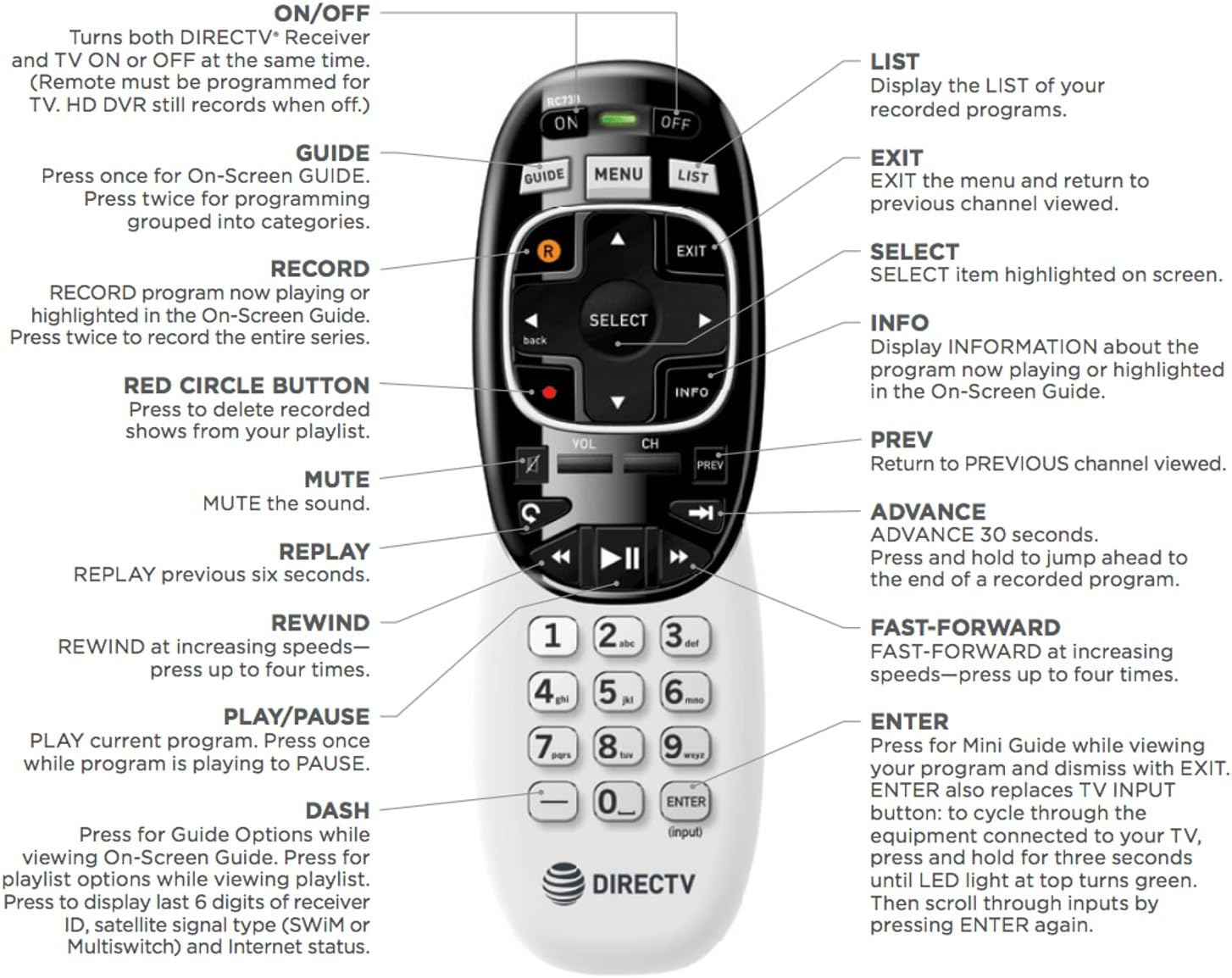 Power Source Type: Corded Electric Connectivity Technology: Infrared Radio Frequency Save when you purchase a 2 pack! With the revolutionary Genie Remote, it’s now easier than ever to find what you want to watch and control your entertainment. New sleek and ergonomic design, almost 20% smaller than our standard Universal Remote Fewer buttons and streamlined layout. Now you’ll know what every button does! Faster response time than our standard Universal Remote, so your receiver reacts instantly to every button-press. Uses both infrared (IR) and radio frequency (RF) technology. Genie Remote is compatible with Genie (model HR44 or above), Genie Lite (model H44 or above), Genie Mini (model C41 or above), 4K Genie Mini (model C61K or above), and Wireless Genie Mini (model C41W or above) in RF mode—no need to point. It’s also compatible with all DIRECTV receivers and DIRECTV Ready TVs in IR mode (requires pointing at the equipment).