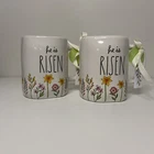 Thanks for visiting my shop! Buyer will receive a pair of Rae Dunn Easter “He is risen” floral mugs for this price. These items are in brand new condition.
