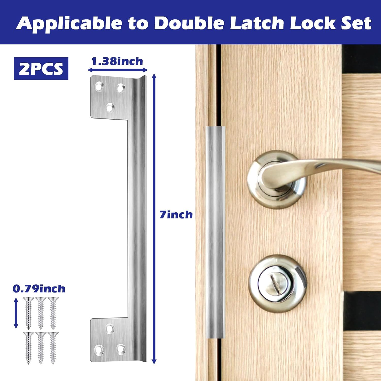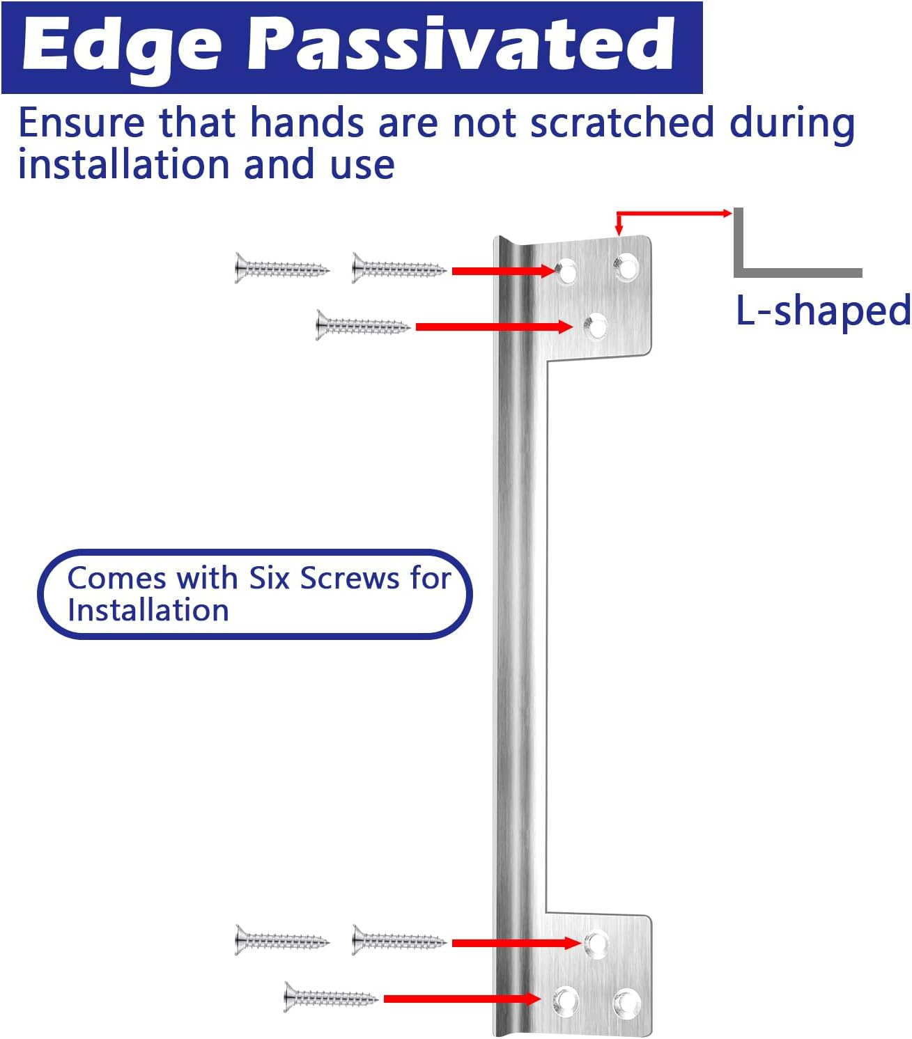 【PACKAGE INCLUDES】: 2pieces 7 inch door latch plate,each plate is equipped with 6 screws,so you will get 12 screws. [Enhance Your Home Security]:This powerful Door Strike Reinforcement Plate helps protect outward doors from being pried open. Deterring use of credit card to jimmy lock. Add extra security to the door. [Easy to Install] :Use power screwdriver and screws (screws included) to mount door latch plate on your door frame, finish DIY door lock installation in less than 5 minutes. The door latch guard is reversible and is suitable for left or right handed doors, wood or metal doors. [Strong Door Strike Plate] The door latch plate is constructed from L-shaped stainless steel,0.04 inch/ 1 mm thickness,rust resistant and durable,Edge smoothed to prevent hands from being scratched. [Repair Broken Door Frame] Invisible door latch guard plate does not affect the appearance of the door. if your door frame is worn out or damaged, the door latch guard plate is the ideal solution.it aids in repairing broken door frames,without the fee of professional services or complete door frame replacement. Product Description