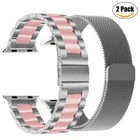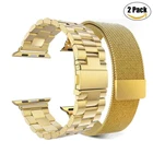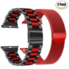 Milanese Loop: √ [ Compatible models ]: Apple Watch SE, Series 1, Series 2, Series 3, Series 4, Series 5, Series 6, Series 7, Series 8, Series 9 and Series 10. √ [ Made of premium stainless steel ]: Strong, Beautiful, Stylish, Durable. Comparable to original Apple band. √ [ Strong Magnet ]: The magnet clip stays in place, it will not budge with normal movements. √ [ Very comfortable to wear ]: It’s not hot in the summer like the plastic bands can be. √ [ Easily adjustable ]: Very easy to swap on and off. Stainless Steel Band: 1.Device Type: Watch Band+Connection . 2.Sturdy and durable, look great, wear comfortable. 3.Easy to install and remove. 4.Special designed for apple watch. 5.Variety of colors, available for selection. 6.Adjustable Band Length:5.5 -7.5inch 7.Band Width Length for 38/40/41mm&apple watch 10 42mm: 0.70 inch ( 18mm ). 8.Band Width Length for 42/44/45/49mm&apple watch 10 46mm: 0.79 inch (20mm ). 9.Material:Metal/Aluminum. *** Suitable for replacing your watch.Multi-color for selection. *** 2 Design Bands : Milanese Stainless Steel Loop+ Metal Stainless Steel Band ,Great permeability suitable for daily wear. Package Includes: 2 x Watch Band Note: Apple watch is not included!!!