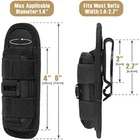 Product Description Feature: 1. CONVENIE NT TO CARRY: Flashlight pouch can be easily attached to a belt, shoulder strap or backpack. Flexible to operate. The durable clip fits belts up to 2 inches. 2. DURABLE ROTATING CLIP: Tactical torch pouch attach the ultra sturdy clip to your belt and allows your light to rotate 360° and lock in 12 different positions for aimable, hands-free lighting from the hip while you work. 3. BUILT TO LAST: Flashlight waist clip construction with moulded foam insulation and high-quality elastic nylon strap. Material Nylon is stretchy and both ends are open, very well fit flashlights tube dia.1.4"(Max), flashlight Length more than 5". 4. UNIVERSAL MULTI TOOL HOLDER: Flashlight holder fits small to medium size handheld flashlight tube dia 0.98"~ 1.4". Such as Anker LC40, GearLight S2000, Fenix TK16, TK20, PD30, UC35 E35, Surefire G2X E2T, UltraFire 501B 502B 800, NiteCore P10iX, P20iX, P23. etc. 5. MAINTAIN ACCESS TO: Open-ended design allows easy access to the flashlight's tail cap. With strap on the front to stabilize your flashlight. Specifications: Color: Black Weight: 70g / 0.154 lbs Flashlight Tube Dia.: 1~1.4" / 2.5~3cm Size: 6"H x 1.7L" x 2"D / 14.5 x 5.5 x 5cm Material: 1000D Nylon,ABS Plastic Buckle Package Included: 2Pcs Flas hlight Holster