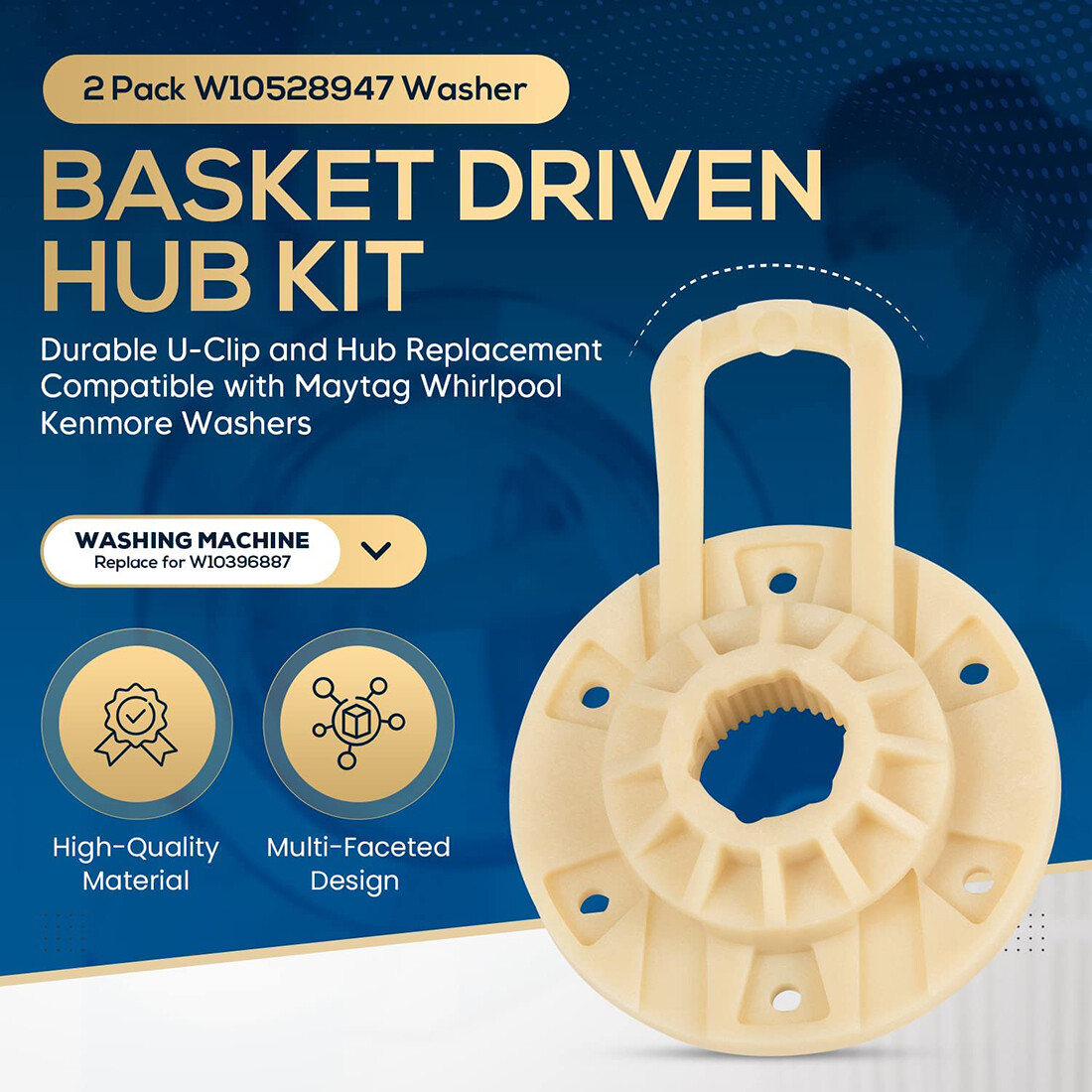 Fitment: For Maytag 7MMVWC400YW2 7MMVWH450DW0 7MMVWH450DW1 7MMVWX500YW2 7MMVWX510YW1 7MMVWX521BW0 7MMVWX521BW1 7MMVWX622BW0 7MMVWX655EW0 7MMVWX700XL2 7MMVWX722BG0 7MMVWX722BG1 etc. For Whirlpool 7MWTW1950YW2 7MWTW4915EW0 7MWTW4925EW0 7MWTW5500XW2 7MWTW5521BW0 7MWTW5521BW1 7MWTW5550YW2 7MWTW5622BW0 7MWTW5622BW1 7MWTW5700YW2 7MWTW5722BC0 etc. For Kenmore/Sears 110.20362810, 110.20362811, 110.21302013, 110.21392013, 110.21492310, 110.21492311, 110.22242510, 110.22242511, 110.22342510, 110.22342511, 110.22342512, 110.22352510, 110.22352511, 110.22442510, 110.22442511, 110.22442512, 110.25102310, 110.25102311, 110.25122810, 110.25122811, 110.25132410, 110.25132411, 110.26002012, 110.26012012, 110.26112310, 110.27102310, 110.28002012, 110.28012012. For Crosley CAW11544EW1 CAW12444BW0 CAW12444DW1. Features: 1) W10528947 Washer Basket Driven Hub Kit replaces W10528947VP, 2684908, AP5665171, PS6012095, W10396887, EAP6012095 2) Fit for Maytag Kenmore Whirlpool Amana Crosley Admiral etc. It only takes you a few minutes to replace the new washer basket driven hub kit 3) Will not agitate; Pumps but will not spin; Spins slowly; Noisy; Leaking water; Shaking and moving 4) Made from durable high-quality material and strictly tested by the manufacturer Package included: 1 basket drive hub 1 drive block retainer