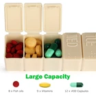 " Large Capacity Enough Space to hold your pills It will satisfy your need to take your medicine once a day. Ideali sizes One piece size 5.1"" × 1.2"" × 0.98"", Each compartment size 0.7"" × 1.2"" ×0.9"". BPA Free Pill organizer made of high quality materials with durable molded is made of ABS plastic, BPA-free materials, is safe for medical use. Never Pop Open Snap-shut lids will stay closed tightly in travel, never worry about your pills spilling. Easy Operation, Friendly for the Old Man Easy to open but stay closed. Days' marks of the Week let you know what to take today. Snap-shut lips can protect your pills from spilling out. " 【SAFETY MATERIAL】Our 2 pcs pill organizer is made of ABS plastic, BPA-free materials,is safe for medical use. 【LARGE SPACE】 Two 7-day pill organizers consists of 14 large spaces , suitable for storage of multiple pills, you can plan your 2X7-day medication. 【IDEALl SIZES】 5.1" × 1.2" × 0.98", Each compartment size 0.7" × 1.2" ×0.9", iscompartments to provide enough space for all meds, great for store one-week supplement or medication. 【EASY TO CARRY 】 Our pill box lids close tightly all the time, will never pop-open and dump pills out in your purse.It is convenient for work , school and travel. 【PRACTICAL DESIGN】 7-day pill organizer takes with day of the week marks on the covers, and adds a braille design to help poor eyesight take pills more conveniently.
