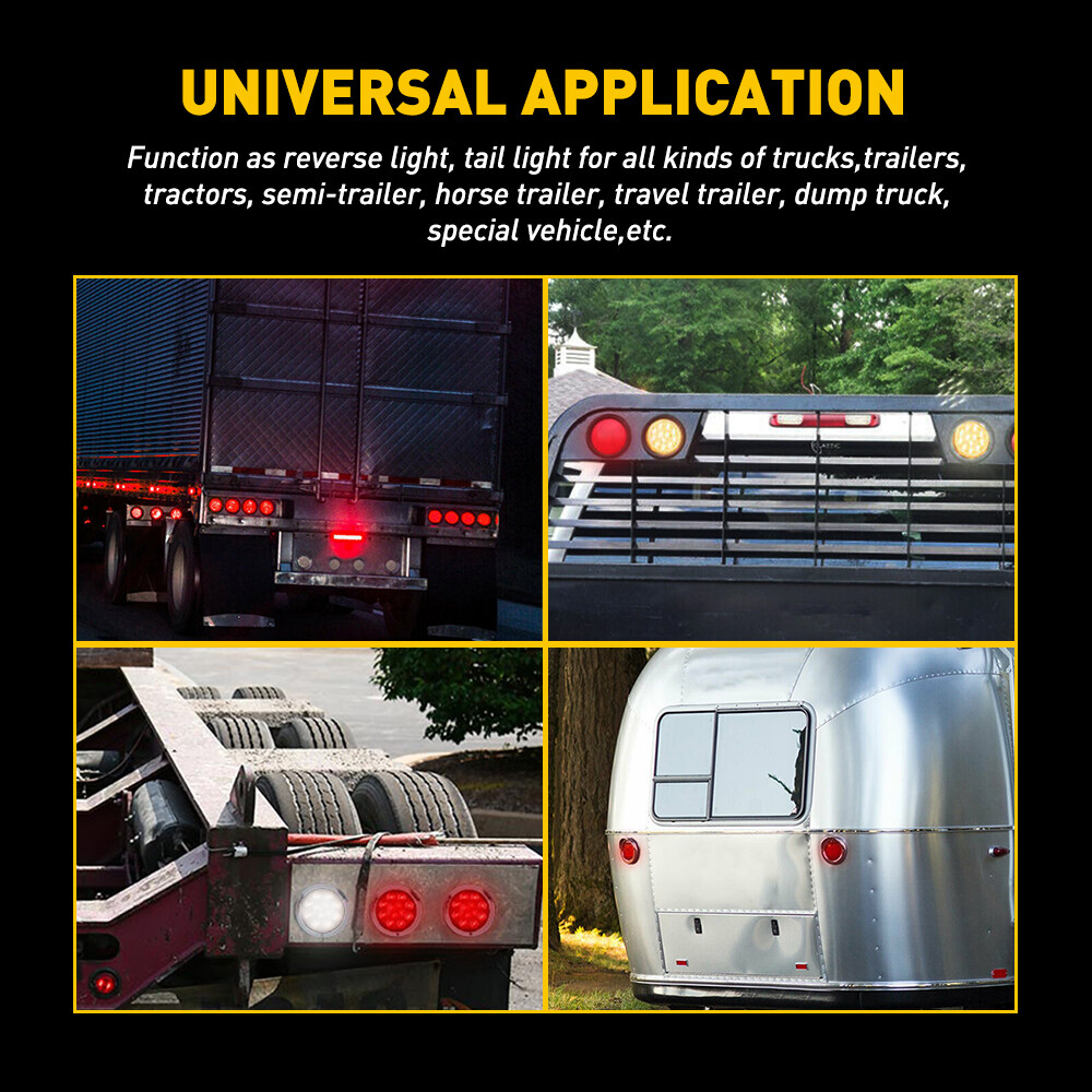 Specification Color: White Voltage: 12V Number of Bulb: 12 LED Material: ABS+PC+Rubber Waterproof rate: IP67 Outer Diameter: 130mm/5.1 inch Inner Diameter: 105mm/4.1 inch Function: Stop/ Turn/ Tail Light/ Backup Reverse light Placement on Vehicle: Front/Rear, Left/Right Suitable model: Universal for Trucks, trailers, tractors, semi-trailer, Dump Truck, bus, boat, special vehicle, and etc. Fits for heavy duty trucks like Peterbilt, freightliner, international ,Kenworth, mack, and so on Wire Connection: Black wire : low brightness Red wire : high brightness White wire : negative pole Features: Qty 2 White 4" 12 Inch LED Round Stop/Turn/Tail Truck Trailer Light Kits Pigtail Specification Color: White Voltage: 12V Number of Bulb: 12 LED Material: ABS+PC+Rubber Waterproof rate: IP67 Outer Diameter: 130mm/5.1 inch Inner Diameter: 105mm/4.1 inch Function: Stop/ Turn/ Tail Light/ Backup Reverse light Placement on Vehicle: Front/Rear, Left/Right Suitable model: Universal for Trucks, trailers, tractors, semi-trailer, Dump Truck, bus, boat, special vehicle, and etc. Fits for heavy duty trucks like Peterbilt, freightliner, international ,Kenworth, mack, and so on Wire Connection: Black wire : low brightness Red wire : high brightness White wire : negative pole Features: *High brightness: Each led light has 12 high quality LEDs to output a super bright light, which sealed with a rubber grommet. *Superior material: Durable PC lens with rubber grommet housing welded together to ensure a permanent and water-proof seal. *Waterproof: The tail light is highly silicon sealed with an IP67 waterproof rating, which works even under extreme conditions such as rain and snow. *Easy to install: Come with rubber grommet & plug,drilling and hardwiring are not required *Wide application: Compatible for trucks, trailers, tractors, semi-trailer, Dump Truck, bus, boat, special vehicle, and etc. Fits for heavy duty trucks like Peterbilt, freightliner, international ,Kenworth, mack, and so on Note: Please check the detail information carefully before purchasing Please allow 1-2mm in size measurement chart for variance due to manual measurement Please excuse us from any possible typos and unintentional misinterpretations Your satisfaction is our utmost concern, please feel free to contact us for any questions and concerns Package Include: 2x 4" 12 LED Round back up Lights Item Specifics Brand AUXITO Country/Region of Manufacture China Manufacturer Warranty 2 Years Package includes 2X 12-LED Round Truck Tail Light with Wiring Plug Lens Color Clear LED Light Color White Voltage / Wattage DC 12V / 12W Material ABS PC Rubber 3 Wires Connection White for Negative, Red for Brake Light, Black for Running Light Functions Reverse, Backup, Rear Parking, Tail Light Lamp Waterproof Water-tight Sealed for Waterproof and Rust Free. Features 1 Ideal for Trailers, Trucks, RVs, Utes, UTVs, Boat, Caravans… Waterproof rate IP67 Features 2 Our LED lights are guaranteed to be the highest quality. Features 3 Comes with wirings plug for Easy Installation Number of Bulb 12 LED Manufacturer Warranty 2 Years Condition New Package includes 2X 12-LED Round Truck Tail Light with Wiring Plug Lens Color Clear LED Light Color White Voltage / Wattage DC 12V / 12W Material ABS Housing, PC Lens, Rubber Cover 3 Wires Connection White for Negative, Red for Brake Light, Black for Running Light Functions Reverse, Backup, Rear Parking, Tail Light Lamp Waterproof Water-tight Sealed for Waterproof and Rust Free. Features 1 Ideal for Trailers, Trucks, RVs, Utes, UTVs, Boat, Caravans… Waterproof rate IP67 Features 2 Our LED lights are guaranteed to be the highest quality. Material ABS PC Rubber Features 3 Comes with wirings plug for Easy Installation Number of Bulb 12 LED Payment 1. We can only accept payment from PayPal. 2. Please keep the consistency of Paypal address and ebay address. Shipping 1. All items will be shipped in 12 hours after receiving your payment . 2. We ship this item to US only via USPS first class mail. It usually takes 3-5 working days to deliver. Returns 1. We offer 30 days return policy. 2. Please contact us within 30 days from the date you receive your package if you have any questions with the products . 3. Refund will be sent after we got your returned package. 4. All returned items should be in the original packaging with tracking number. Contact Us We work from Monday - Saturday 9:00AM - 6:00PM, but we will reply once we get your message. There will be delay on response if you send message or E-Mail on Sunday. DESCRIPTION PAYMENT SHIPPING RETURN POLICY CONTACT US Shop Category Store Home Other Hot Item Rear Left or Right Outside Door Handle for 2010-2016 Toyota 4Runner Lexus GX460 USD 14.99 1set Control Knob Speed Fan Heater A/C For Jeep Wrangler TJ 99-06 5011218AA USD 9.99 For 2002-2008 Dodge Chrysler Stereo Car Radio Wiring Harness Adapter USD 11.59 Door Latch Cables LH+RH Front For 2007-2013 Chevy Silverado 1500 2500 HD 3500 HD USD 17.99 Universal Car Windshield Wiper Squirter Washer Nozzle Spray Jet Kit Fluid Hose T USD 9.99 New List Item For 2015-2023 Chrysler 300 2PCS Smoked Lens Rear LED Side Marker Lights Red USD 18.99 Hood Latch Release Replacement For Kit Pull Handle Repair Chevy Silverado GMC USD 10.99 300mm Universal Clip Rear Interior View On Clear Tint Mirror Wide Angle Mirror USD 14.99 AUXITO 9003/H4 CSP Headlight LED Bulbs Conversion Kit Hi Low Beam 65000K White USD 37.99 MAP Sensor For 2011-2017 Chevrolet Cruze Trax Buick Encore 1.4L 55567257 EPU USD 14.99 Excellent Delivery Qty 2 White 4" 12 Inch LED Round Stop/Turn/Tail Truck Trailer Light Kits Pigtail Specification Color: White Voltage: 12V Number of Bulb: 12 LED Material: ABS+PC+Rubber Waterproof rate: IP67 Outer Diameter: 130mm/5.1 inch Inner Diameter: 105mm/4.1 inch Function: Stop/ Turn/ Tail Light/ Backup Reverse light Placement on Vehicle: Front/Rear, Left/Right Suitable model: Universal for Trucks, trailers, tractors, semi-trailer, Dump Truck, bus, boat, sp