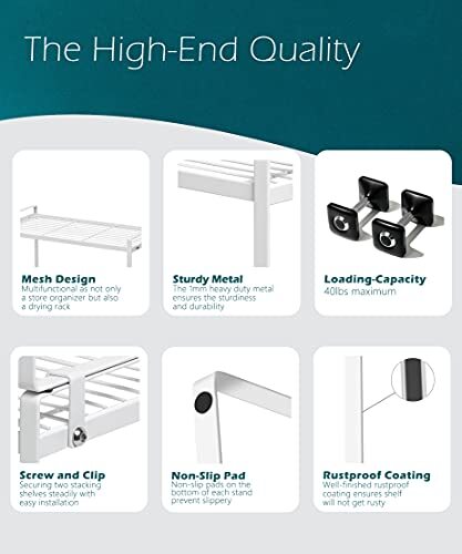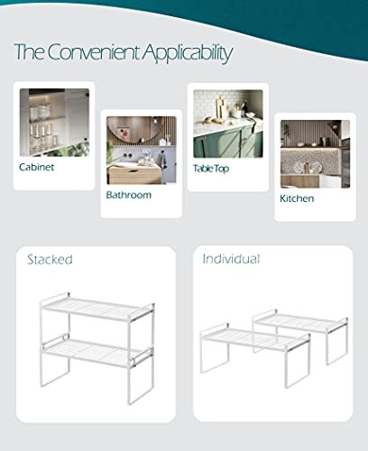 Menu 1. We require immediate payment. 2. We currently accept payment via eBay managed payments only. 3. Once payment is cleared, we will dispatch your shipment within 1-3 business days. Please refer to the "Shipping" tab for more information regarding shipping speed to your destination. 2Pack Cabinet Shelf Organizer Storage Rack Space Saving for Kitchen Counter Pantry Bathroom Cupboard Under Sink Office Table Desk Steel Stackable Rust Resistant Heavy Duty Nonslip 16” White Product description MULTIFUNCTIONAL: These cabinet shelves can be used individually or stack one to the other to become a 2 tiers shelves to organize your items. They are great organizers for your cabinet, pantry, cupboard, closet, drawer or counter top in kitchen, bathroom, bedroom and under the sink. With the mesh design board, it can be a drying rack for dishes, bottles, plates. EXTRA SPACE: These stackable cabinet shelves maximize storage efficiency, providing more spaces as a riser which allows you to use the upper space. The added storage space helps organization and tidiness. All the wee little bottles, tins, vials, pans and a myriad of other kitchen utensils could go underneath, the middle or the top of the cabinet shelf, reaching with ease. STURDINESS and RELIABILITY: Made with heavy duty metal that built to last. With the well-finished coating on so won’t get rusty and smooth to the touch. The bottoms of the stand frame with non-slip pads attached so it will stay securely and won’t slip off the surface. They are an absolute beautiful addition to your home or office. MAX UTILITY: It can be a shelf or rack to serve your organizing purpose. It’s a great organizer for dishes, bottles, cans, pots, pans. It’s also a rack for snacks, spices, seasonings, fruits and so on. It helps to make spaces more efficient and tidier. SPECIFICATION: Individual one shelf: 16 * 8.3 * 7.3 inches. Stacked two shelves: 16 * 8.3 * 14.6 inches. Loading Capacity: 40lbs. Manual and assembly parts includes in the package. You’re welcome to contact us if you have any problems with our products. PLEASE MESSAGE US IF YOU HAVE ANY OTHER QUESTIONS, AND MANY THANKS FOR READING ALL OF THIS. Copyright ©#. All Rights Reserved.