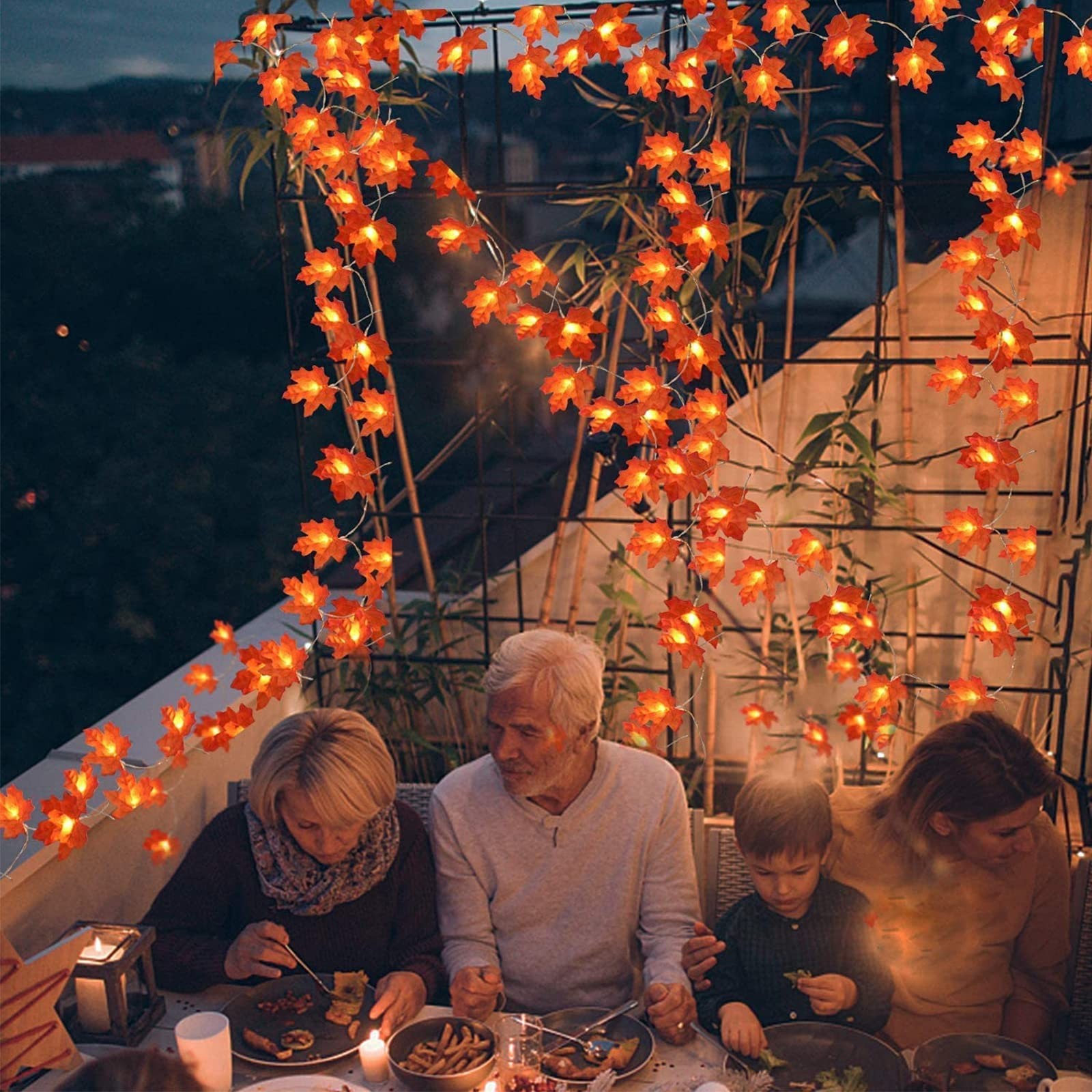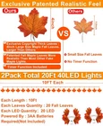 Design Patent Enlarged Maples Leafed Lights for Days and Nights Fall Decor: Design Patent Maples Leafed. 2 Pack Total 20ft/40 LED Lights with 40 fallen leafed decoration. The maples leafed are specially enlarged to 4 inch Perfect for Days and Nights Fall Decorations: 2 Pack Total 20ft/40 Led Lights with 40 fallen leafed decorations. Looks like the real fallen leafed, Perfect for both days and nights decorations Battery Operated Fall Decorations for Home: Requires 3 AA batteries (Not Included), Operate easily and safety, 2 modes to choose: flashing and steady on, that emits a warm white light, portable battery box with ON/Flash/OFF Waterproof Material: Fall lights is made of fabric cloth material, No horrible smell, brilliantly and never crumpled, Maples Leafed garland is waterproof for indoor and outdoor use. Fall string lights consists of 4 high-quality silver wires Widely for Indoor & Outdoor: Fall garland features autumn-colored leafed in a gorgeous and impressive display. Great for indoor-outdoor Halloween Thanksgiving decorations