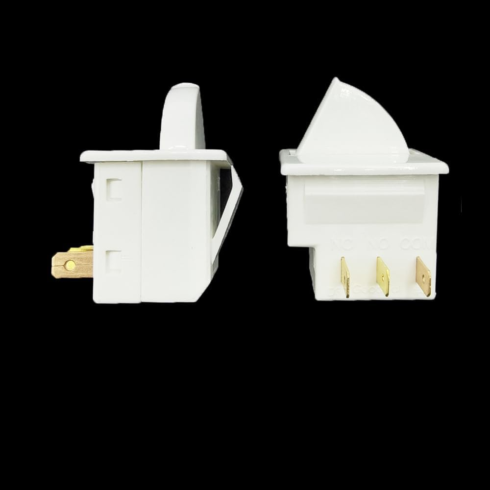 Keep your refrigerator or freezer properly lit with this 2-pack DSkoiph 3-Pin Door Light Switch Set , compatible with major brands like GE, Whirlpool, Maytag, Admiral, Amana, Kenmore, KitchenAid, and Magic Chef. These momentary switches are ideal replacements for faulty or worn-out door light controls, ensuring reliable operation and easy installation. Perfect for both top and bottom freezer models. Key Features Quantity: 2 Pieces Type: 3-Pin Momentary Door Light Switch Compatible Brands: GE, Whirlpool, Maytag, Admiral, Amana, Kenmore, KitchenAid, Magic Chef Function: Replaces worn or faulty fridge and freezer door light switches Easy Installation: Plug-and-play replacement design Durable Construction: Long-lasting performance Ideal For Refrigerator and freezer repair Appliance technicians DIY home appliance maintenance Replacing broken or defective door switches Rated Voltage: 125/250V AC. Rated Current: 2.5A 250V/6.0A 125V. Function: NC: Normally Closed, when refrigerator's door open it is close and light will be on. Universal compatible design, replacement for most Whirlpool, GE, Kenmore, Maytag, KitchenAid, Admiral, Amana, Crosley, Jenn-Air, Magic Chef refrigerators' door light switch. Connect pin size: 0.31"x0.19"x0.02"(LxWxThickness). Material: Plastic, Brass Package content: 2 x 3Pin Refrigerator Door Light Switch. Product Description Rated Voltage: 125/250V AC Rated Curren t: 2.5A 250V/6.0A 125V. Contacts Type: 1NO + 1NC + 1COM Number of Pins: 3 Pin Fitment: This light switch is single-pole and snap-in installation; Universal compatible design, replacement for most Whirlpool, GE, Kenmore, Maytag, KitchenAid, Admiral, Amana, Crosley, Jenn-Air, Magic Chef refrigerators' door light switch.