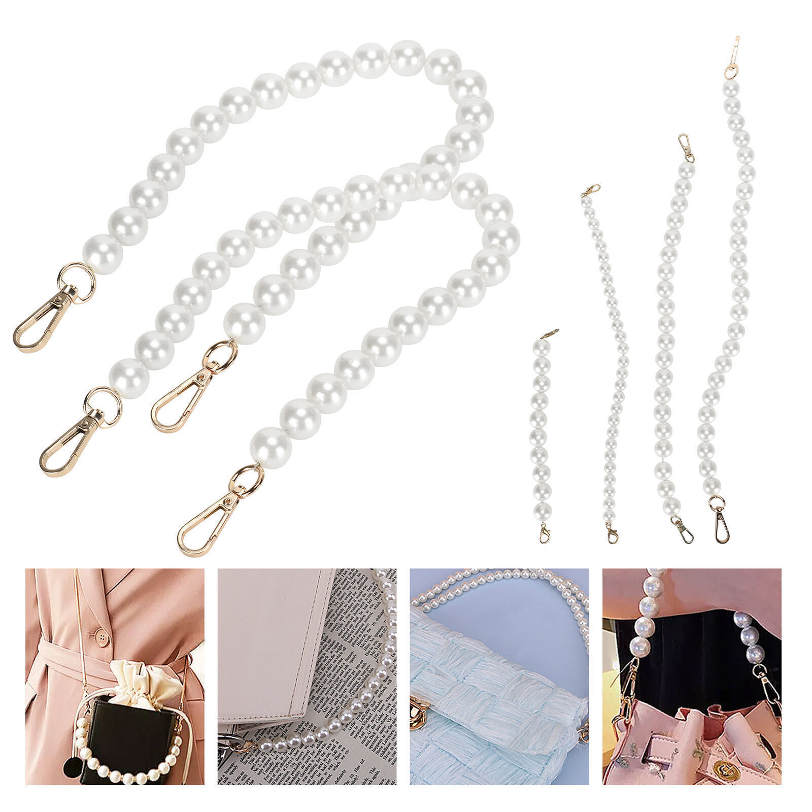 Feature: 1. Exquisite craftsmanship, milky white faux pearls add elegant decoration to your bag. 2. Matched with alloy lobster claw clasp to ensure firmness and easy installation. 3. Widely used, can replace or DIY short chains of bags, such as handbags, etc. 4. Small size, easy to carry and store, convenient to use and with good performance. 5. Can be used with peace of mind, with strict quality control and quality assurance. Specification: Item Type: Faux Pearl Bag Strap Specification: 2Pcs Main Material: Faux Pearl (The product is composed of complex materials) Uses: Clothing accessories Size: Length x Diameter: Approx. 210 x 18mm / 8.3 x 0.7in 370 x 12mm / 14.6 x 0.5in 415 x 18mm / 16.3 x 0.7in 510 x 18mm / 20.1 x 0.7in Package List: 2 x Faux Pearl Bag Strap Note: Manual measurement, with small errors.