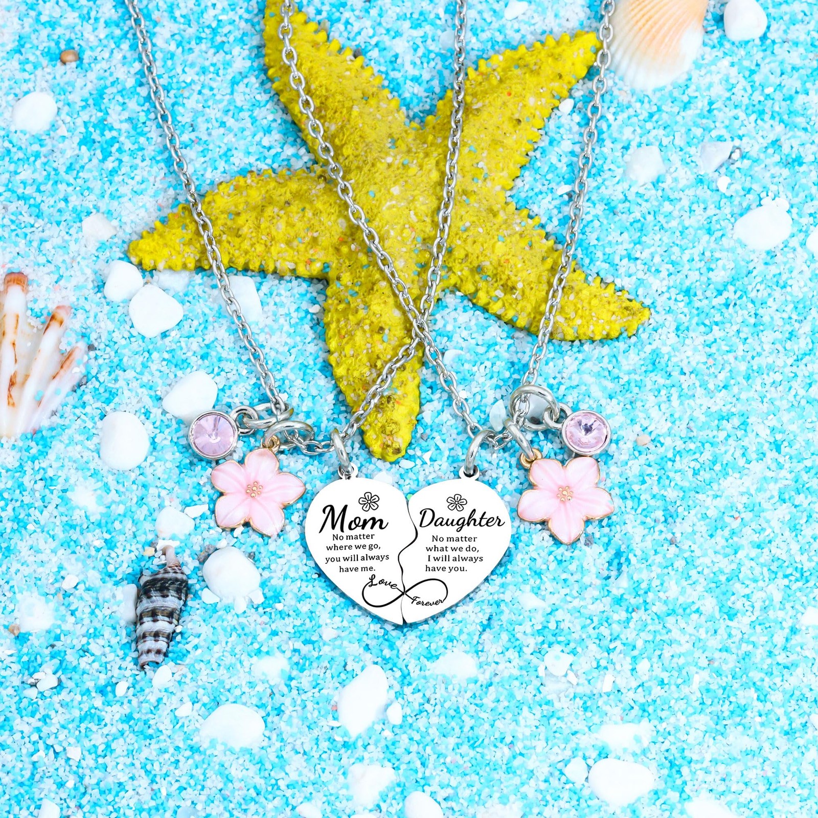 These heartfelt mother daughter necklaces are the perfect way to show mom just how much she means. Crafted from polished pendants in silver tone, each necklace features a unique heart charm engraved with "Mom" and "Daughter" on either side. Wearing matching pieces will help you feel close no matter how far apart life takes you. At just over an inch in size, the charms are delicate yet the sentiment runs deep. This set makes a traditional mothers day gift she's sure to treasure for years to come as a reminder of your loving bond. For just a small gift, it represents your big appreciation for everything she does. Meaningful Gift: This 2-piece mother daughter pendant necklace features heart shaped pendants engraved with "Mom" and "Daughter" for a touching gift on Mother's Day. Sentimental Design: 2Pcs Mother Daughter Heart Matching Pendant Necklace Set Gifts For Mom Mothers Day Birthday Christmas Presents From Daughter Mothers Day Gifts for Mom Comfortable Fit: Adjustable chain necklaces have an extender for a customizable fit and lay flat against the collarbone at 23.6 inches in length. Enduring Keepsake: Pendants Made of Stainless Steel can be cherished for years to come as a timeless reminder of the unbreakable mother-daughter bond. Easy Gift Giving: No assembly required gift is ready to give with a sweet sentiment, ideal for mothers day, birthdays or just because you care.