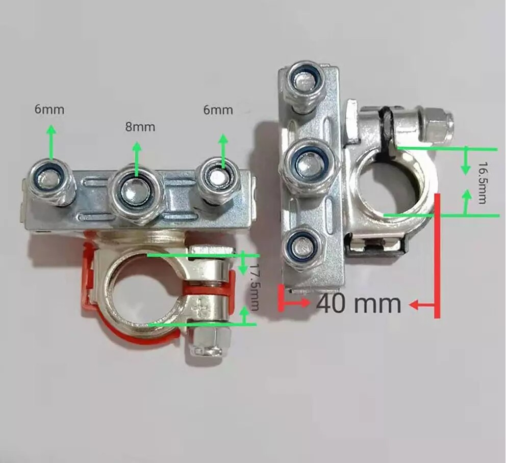 Package Included: 1x Positive Battery Terminals Clamps (Red) 1x Negative Battery Terminals Clamps (Black) 2Pcs Car Caravan Connectors Battery Terminals Positive Negative Clamps Universal Specification: Positive Inner Diameter: Approx. 17.5mm/0.69in Negative Inner Diameter: Approx. 16.5mm/0.65in 3 Posts Diameter: 2 x 6mm/0.24”, 1 x 8mm/0.31” Material: Alloy iron galvanized Color: Red Cover (Positive) And Black Cover (Negative) Quantity: 2Pcs (Red+Black) Application: For Cars, Trucks, Ships, Trailers, Rvs, Etc. Feature: Easily Replace Your Vehicle Battery's Top Terminals And Post Washers With High-Performance Sensitivity. Having Excellent Conductivity And Could Perform 3x Faster Than Other Top Terminals. Having Super Corrosion Resistance, And Are Long-Lasting And Durable. High Electrical Conductivity, Less Voltage Distortion, And Low Transmission Loss. One Red (+) And One Black (-) Clamp, Easy To Distinguish The Positive And Negative, Preventing The Risk Of Electrical Shock. Suitable For Most Battery Models And Will Work Great For Replacing Worn-Out And Corroded Terminals. Soft Felt Post Washers Protect The Battery When Charging. Fits 12V 24V Positive Or Negative Battery Plates. Widely Applied To The Car, Van, Caravan, Motorhome, Truck, Boat, Etc. Just Make Sure To Connect The Correct Terminal For The Correct Polarity. Package Included: 1x Positive Battery Terminals Clamps (Red) 1x Negative Battery Terminals Clamps (Black) Please Note: Please Allow a Slight Dimension Difference Due To Different Manual Measurements. Due To The Light And Screen Setting Difference, The Item's Color May Be Slightly Different Brand Unbranded Country/Region of Manufacture China Manufacturer Warranty 3 Months Color Red+Black Type Battery Terminals Material Alloy iron galvanized