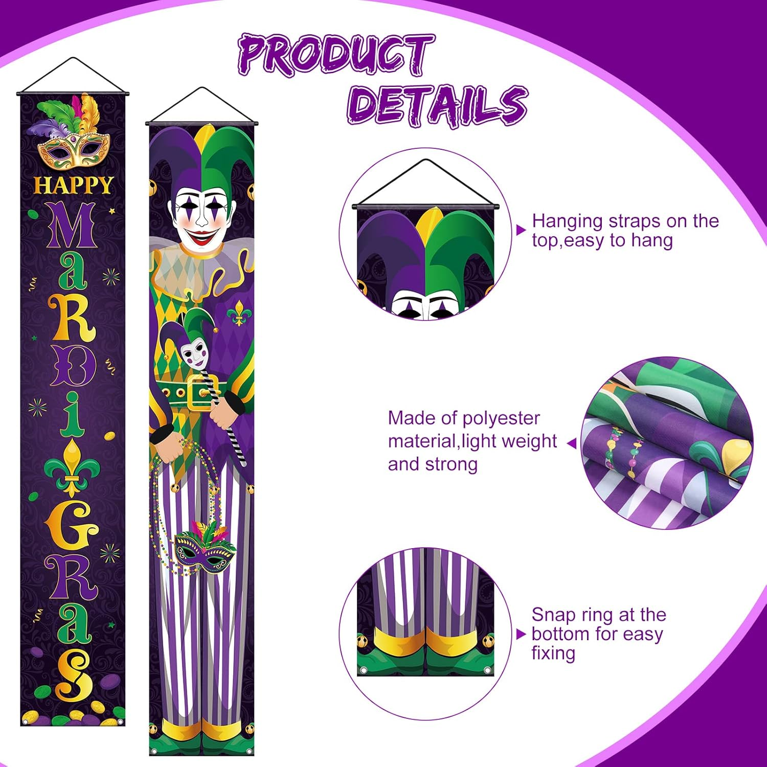 Store New Arrivals Add to Favorite View Feedback Contact Fast deliveries to the customer's home Quality customer service John Make the customers happy! 2 Pieces Mardi Gras Porch Sign Mardi Gras Banner Mardi Gras Party Hanging Door Banner Mardi Gras Porch Banner Mardi Gras Decoration Mardi Gras Front Door Banner for Carnival Masquerade Party Supplies Description Quantity and Size: you will receive 2 pieces of Mardi Gras hanging banner from the package, the measured size is approx. 70.9 x 11.8 inches/ 180 x 30 cm; This height is very suitable to decorate your front door, add a happy festival charm to your house Reliable Material: the Mardi Gras door porch sign is made of oxford fabric, lightweight and portable, not easy to wrinkle, no deformation and no pilling, washing without fading; You can carry it around and use it for a long time Easy for Hanging: the Mardi Gras joker porch banner has a hanging strap at the top, it is strong and easy to hang; Whether you use panel nails, hooks, hangers or straps, you can easily install it anywhere you want Nice Design: the main color of the Mardi Gras outdoor decoration banner is purple, which is printed with words [Happy Mardi Gras] and a joker holding a mask; The large letters and vivid colors catch everyone's eyes easily Wide Application: the Mardi Gras party porch sign can be applied on both sides of the porch, indoor and outdoor walls, to decorate the party, school and home; You can also share them with your friends or colleagues during the holiday, which will create a completely festive atmosphere for you Product Description Item model number NS--513 Package Dimensions 13.35 x 3.19 x 0.83 inches Color Purple Product Dimensions 70.9"L x 11.8"W Material Oxford Fabric Specific Uses For Product Mardi Gras celebration Item Weight 6.4 ounces Theme Mardi Gras Recommended Uses For Product Party Occasion Mardi Gras Special Feature Fold, Lightweight, Fade Resistant Cartoon Character Joker ABOUT US We offer the best prices around on high quality products. Our E-store includes media such as books, movies, music and games while offering electronics, toys, sporting apparel, clothing, tools, general home, garden items and more. SHIPPING We are always working hard to ensure your package arrives as soon as possible. Please understand that some factors like weather, high postal traffic, and the performance of shipping companies are outside of our control. We offer free shipping to the lower 48 states and ship within 2 business days of payment, usually sooner. We do not accept P.O. Boxes. Please provide a physical address. For shipping outside of the continental USA, we only use eBay's Global Shipping Program. The item is shipped to KY and then sent to the rest of the world. International customers are responsible for all duties and taxes. Continue to 'check out' to calculate costs for shipping the item to your country. Messages regarding eBay's Global Shipping Program MUST be directed at eBay EXCLUSIVELY. RETURNS We offer a 30-Day Return Policy on items in which you are not completely satisfied with. You have the option of a full-refund or an exchange of the item. No returns are available on items shipped outside of the USA PAYMENT We accept PayPal. CONTACT US This page content is yet to come Please ad us to your favorite seller and visit again later Thank You CUSTOMER SATISFACTION We try our very best to make sure every customer is completely satisfied. If there's a problem, message us! We're happy to help. WE ACCEPT
