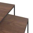This distinctive and stylish coffee table set, in two different sizes, is meant to make a great addition to your living room, hallway, etc. Premium material: The engineered wood is of exceptional quality with smooth surface and also features strength, stability and resistance to moisture. Made of engineered wood, the tops of the nesting coffee tables are easy to clean. Strong and sturdy structure: The iron frames of the stackable tables ensure sturdiness and stability. Versatile nest of tables: The nesting table set can be used as nightstands, side tables, couch tables, etc. You can use them separately or stack them together to save storage space. Color: Black and brown Material: Engineered wood, iron Dimensions (L): 15.7" x 15.7" x 18.9" (W x D x H) Dimensions (S): 13.8" x 13.8" x 13.8" (W x D x H) Assembly required: Yes Delivery contains: 2 x Table California Proposition 65 Warning: This product can expose you to chemicals including wood dust, which is known to the State of California to cause cancer. For more information go to . Shipping Restrictions Due to the limited access of our couriers, this item cannot be delivered to the following locations: Alaska Federated States of Micronesia Guam Hawaii Marshall Islands Military Posts (APO / FPO) Palau Puerto Rico US PO BOX Virgin Islands Our customer support will contact buyers for orders with no shipment service, and these orders will be cancelled and fully refunded afterwards.