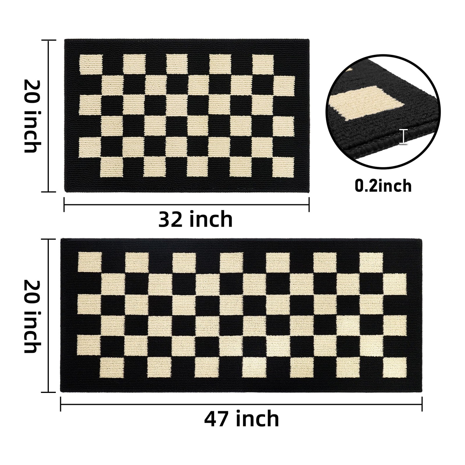 2 PCS Kitchen Rugs 【High Quality Kitchen Mat】This 2 PCS high-end kitchen rugs is made of high quality polypropylene, strong, environmentally friendly, and odorless. It can effectively protect the floor from scratches and wear, and also cushion the carpet to protect the floor from dropped cutlery or fragile bowls. As a rug for use in high-traffic cooking areas, large-size kitchen rugs are a great way to keep your kitchen clean and tidy. 【Absorbent Kitchen Mat】This kitchen mat is made of polypropylene material, with excellent dirt resistance and water absorption. Perfect absorption of water and oil stains and stains in the daily cooking process, can keep the floor clean and tidy for a long time, and create a comfortable kitchen environment. With our absorbent kitchen rugs and mats, cleaning up spills becomes a breeze, saving a lot of time cleaning and drying the floor. Suitable for kitchen rugs and mats. 【Non Slip Kitchen Mat】The kitchen mat uses high-quality non-slip TPR backing to increase the friction between the kitchen mat and the floor, which helps to maintain the stability of the carpet so that the kitchen mat is firmly fixed in the proper position to prevent movement and slipping. It won't wear down the floor while keeping your family safe. 【Easy to clean Kitchen Mat】When your kitchen mat gets dirty, first shake it off outdoors or on a trash can, then sweep the floor regularly with a broom or vacuum, or rinse the carpet outdoors with a garden hose. It doesn't take long to get a clean kitchen rug. For deeper cleaning, machine washing and drying are available. 【Multi-Scene Use】We offer 2PCS 20 "x32 "+20 "x47 " for your home.The wider and longer design makes this mat suitable for a variety of scenes and it can be placed in different sizes in different areas of your home to coordinate your decor. Widely used in kitchens, in front of kitchen sink, indoor front door, laundry room, hallway, living room, back door, garden, balcony, garage, office, and any other high-traffic area.