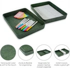 【Package content】 2 piece set Desk drawer organizer trays for papers documental files, quiet luxury forest green color drawer organizer bins, more economical and affordable for home office dorm storage and organization 【Perfect size】for paper files organization: 13.4" x 9.4" x 1.8", to flex and fit the drawer or put on the desktop, maximizing and organizing the WFH space 【Sustainable material】recycled felt with a comfortable touch. No noise like plastic keeps stuff from flying around in the drawer. Soft to prevent scratching, flexible for space saved up on a desk, kitchen, bathroom, or anywhere you desire with these stylish storage and organizer bins. 【Multi-purposed storage and organizer 】separate and protect surfacescan to put in the drawers to hold small accessories , or on the desk to keep sticky notes and other quick-grab items that you want to keep handy but not have them highly visible. 【Add a modern touch】 to your office or home. Eye-catching 2 tones color , light weight solutions to many storage needs while keeping household items like candy ,makeup cosmetic ,kitchen utensils and bath accessories tidy and organized. Product Description Package Content : 2pcs file bins, 2 tones colors of bins packed with gift box. Perfect size : 13.4 x 9.4 x 1.8 in, big letter-sized for laptop, tablet, paper document file, letters magazine newspapers organize Material : felt, comfortable to touch, soft to prevent scratching, and flexible for saving space on a desk, kitchen, bathroom, or anywhere else you desire with these stylish storage and organizer bins. Multi-use storage bins can be put in the drawers to hold small accessories or on the desk for home office use Add a modern touch to your office or home. Eye-catching, rich color choice, lightweight solutions to many storage needs while keeping household items like pencils, art brushes, tools makeup cosmetics, kitchen utensils, and bath accessories tidy and organized. Make a sleek , simple, minimalist lifestyle Felt office drawer organizer Trays storage bins for DIN A4 papers organize office drawer organizer bins for documental files ,magazine books organize Made of felt, 2 pieces per pack. Size:13.4 x 9.5 x 1.8 in, a letter-sized tray for paper documental files, or with small accessories, pens, gifts, Jewelry, etc in the bin to fit in the drawer or on the desktop, just any item you think of to be organized. Attractive rich color combination, lightweight solutions to many storage needs while keeping household items tidy and organized Organize each in a clean and stylish lifestyle. Enables you to efficiently find what you need and move through your day with ease. Mix and match for any drawer size and storage need. Perfect for home, office, or desk use. Soft but sturdy felt bins for office organize Perfect size for DIN A4 papers organize : 13.4 x 9.4 x 1.8 in Large letter-sized tray for paper, magazines, books, documental files, laptop, and tablet storage Durable, sturdy to hold documental files and A4 papers Soft to protect any fragile small things, clothes, socks, or any items you think of to be organized Rich color choices to meet room interior decor Flexible felt to add a modern, simple, sleek, minimalist lifestyle. Gift solution Tide up small things with these bright colors of drawer organizer trays, and fancy up our room for home office and school. Makes a great gift for everyone, him or her or kids, father, husband, son, partner, or friends on Father's Day, Valentine's Day, Mother's Day, Christmas holiday, Anniversary day, Birthday, Graduation, etc. Where and what to be storage and organize For bathroom storage or electronics organize organize for personal care small things like nail clippers, hairbrushes, combs, jewelry phones, chargers, cables, spare battery SD cards, and stuff well organized, easy to find. hard drives, USB sticks, camera lens, or a small battery bank to find the right place, make desk decluttering and neatly For self-care organize as still life decor to protect no damaged fragile items, perfume, essential oil bottles, candles decluttering, and creating a relaxing space to improve your mental health being organized have such positive effects on our mental, emotional, and physical well-being For office desktop organize Letter-sized paper holder for office documents file sorting Organize pens, sticky notes, markers, and office stapler tools for drawer organization, and cozy interior decor make small things in order and neatly for desktop storage and organization. size to fit a drawer or on the desk all are perfect and eye-caught