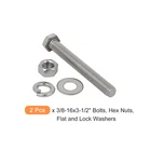 Document APPLY TO - Hex head bolts nuts can be widely used in home and office appliances, communication equipment, ship assembly, and other machinery industrySPECIFICATION:Product Name: Hex Bolt KitThread Type: UNC 3/8-16Thread Length: 3-1/2"Hex Bolt Head Size: 14mm(W)x6mm(T)/0.55"x0.24"Material: 304 Stainless SteelMain Color: Silver ToneQUANTITY INCLUDED - 2 x 3/8-16x3-1/2" Bolts, Hex Nuts, Flat and Lock WashersADVANTAGE - These hex socket head cap screws are made of 304 stainless steel, high temperature, corrosion, rust resistance, and durability, and can be used indoors and outdoors or in humid environments. 2Set 3/8-16x3-1/2" Hex Head Fully Threaded Screw Bolt with Flat and Lock Washers APPLY TO - Hex head bolts nuts can be widely used in home and office appliances, communication equipment, ship assembly, and other machinery industry SPECIFICATION: Product Name: Hex Bolt Kit Thread Type: UNC 3/8-16 Thread Length: 3-1/2" Hex Bolt Head Size: 14mm(W)x6mm(T)/0.55"x0.24" Material: 304 Stainless Steel Main Color: Silver Tone QUANTITY INCLUDED - 2 x 3/8-16x3-1/2" Bolts, Hex Nuts, Flat and Lock Washers ADVANTAGE - These hex socket head cap screws are made of 304 stainless steel, high temperature, corrosion, rust resistance, and durability, and can be used indoors and outdoors or in humid environments. Hot Item Payment 1.We accept eBay payment . 2.Payment must be received within 7 business days of auction closing. Shipping 1.We ship to your eBay or Paypal address. Please make sure your eBay and Paypal address is correct before you pay. 2.Items will be shipped within 1-3 business day when we received payment. 3.Delivery time depends on destination and other factors. Description Policy 2Set 3/8-16x3-1/2" Hex Head Fully Threaded Screw Bolt with Flat and Lock Washers APPLY TO - Hex head bolts nuts can be widely used in home and office appliances, communication equipment, ship assembly, and other machinery industry SPECIFICATION: Product Name: Hex Bolt Kit Thread Type: UNC 3/8-16 Thread Length: 3-1/2" Hex Bolt Head Size: 14mm(W)x6mm(T)/0.55"x0.24" Material: 304 Stainless Steel Main Color: Silver Tone QUANTITY INCLUDED - 2 x 3/8-16x3-1/2" Bolts, Hex Nuts, Flat and Lock Washers ADVANTAGE - These hex socket head cap screws are made of 304 stainless steel, high temperature, corrosion, rust resistance, and durability, and can be used indoors and outdoors or in humid environments. Hot Item Payment 1.We accept eBay payment . 2.Payment must be received within 7 business days of auction closing. Shipping 1.We ship to your eBay or Paypal address. Please make sure your eBay and Paypal address is correct before you pay. 2.Items will be shipped within 1-3 business day when we received payment. 3.Delivery time depends on destination and other factors.