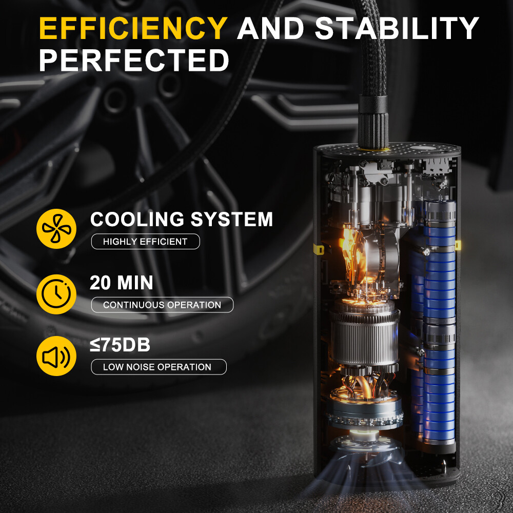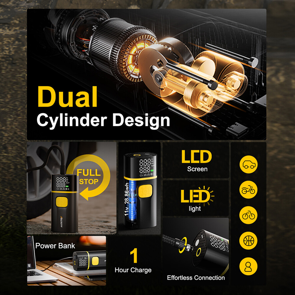 This portable tire inflator is a game-changer! The powerful 7800mAh battery lasts forever, and the LCD screen makes it super easy to check pressure. It's fast, quiet, and works great for cars, bikes, and motorcycles. The compact size is perfect for keeping in your trunk, and the auto-stop feature prevents overinflation. No more gas station air pumps for me!