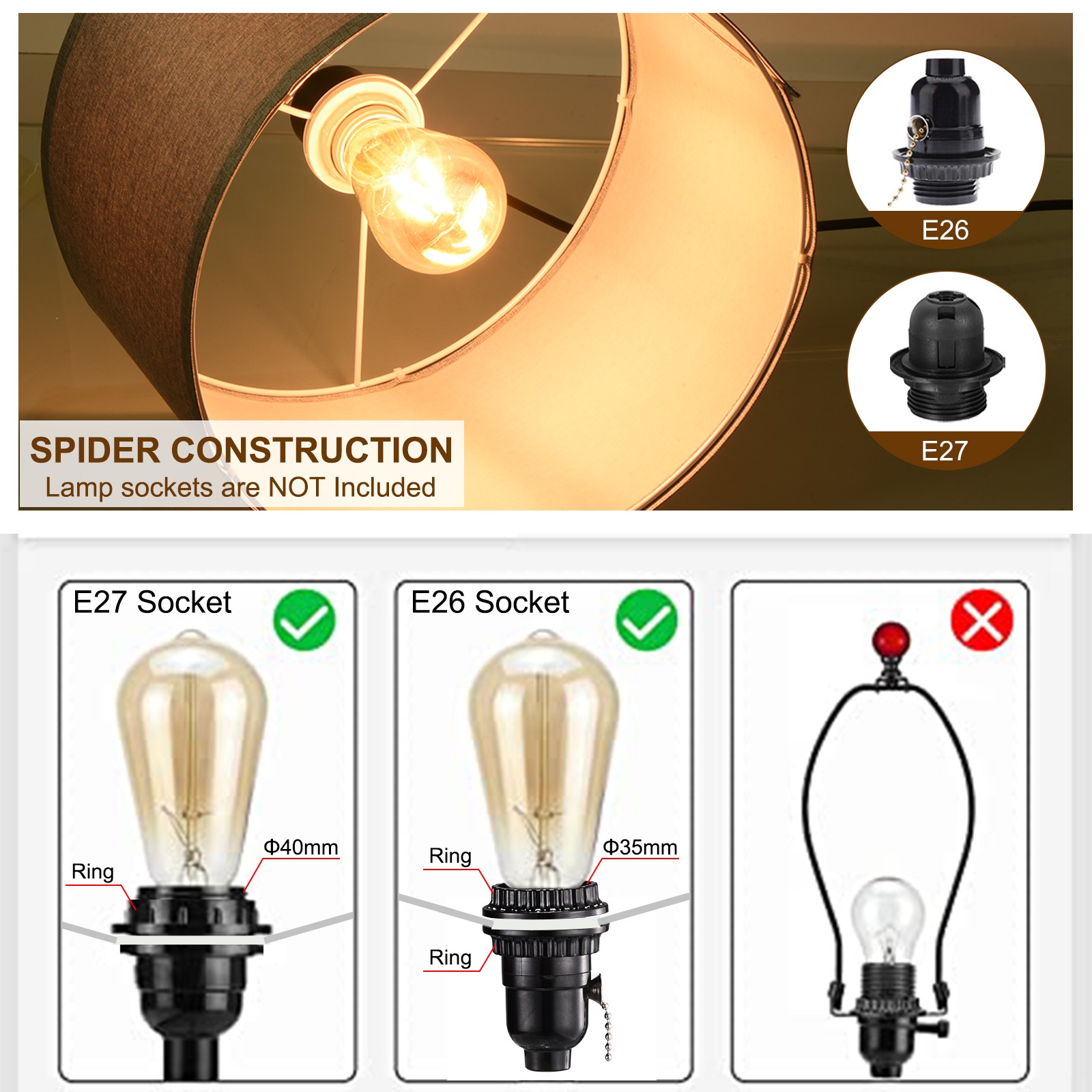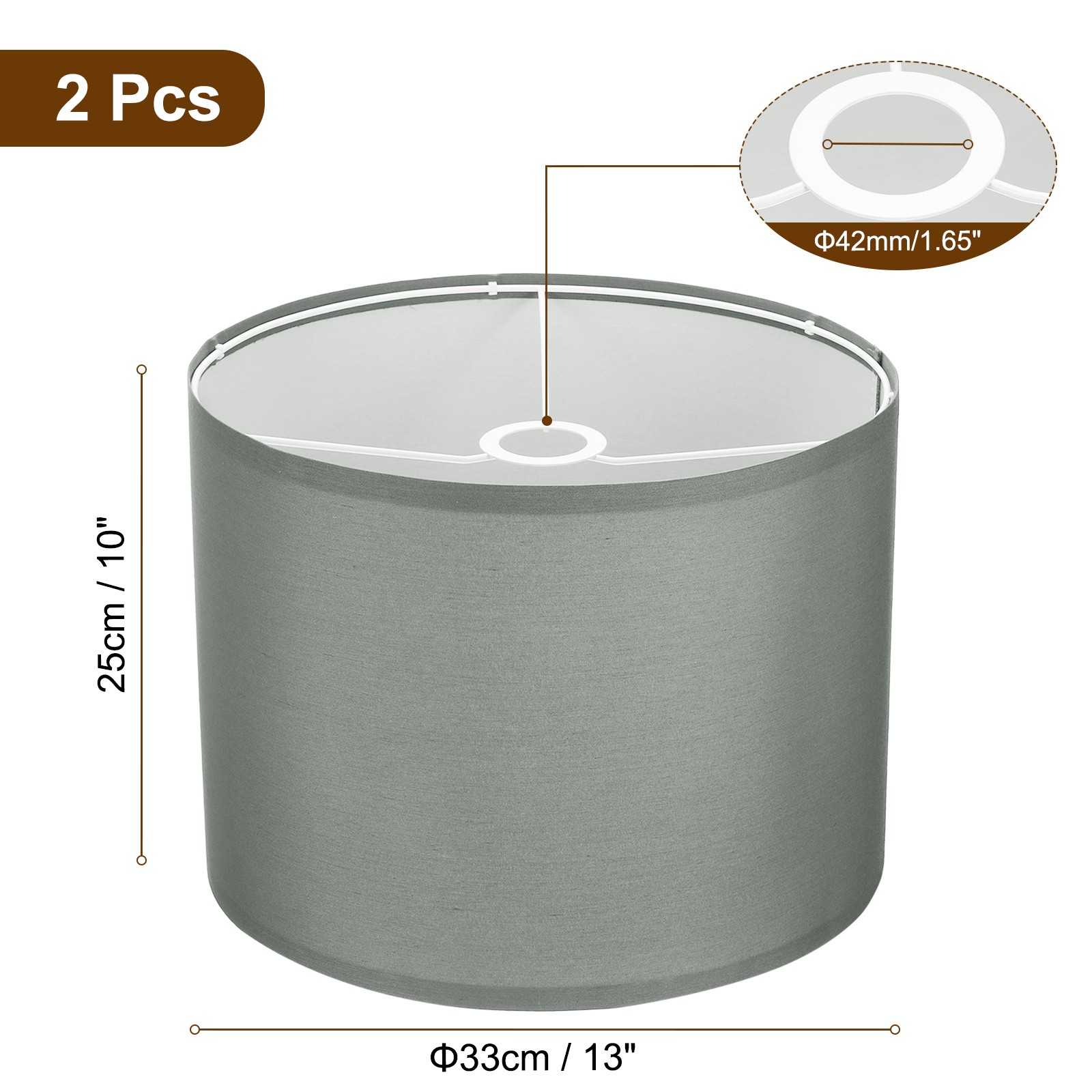 Document √DIY ASSEMBLY REQUIRED√: To better protect and prevent being broken during transportation, our lamp shades are rolled up before putting into box. You need to fix lamp shades around metal rings by fitting into the clips, easy and quick to set up by yourself within 1 minute.√WHAT YOU GET - Our table lamp shade 13-inch (33cm) diameter top, 13-inch (33cm) bottom diameter, 10-inch (25cm) high; 1.65 inch (42mm) ring diameter. Equipped with three adapter rings, it can easily adapt to E27/E26/E14 lamp socket and Spider Fitter installation√MULTIPURPOSE - The linen lamp shade has a simple and classic design, Medium size fits most table lamps, pendant lights, and floor lamps, which can create a modern minimalist style or a rustic style. Widely used in the living room, bedroom, study room, office, entryway, kitchen, island, and farmhouse.√RELIABLE MATERIAL - The floor lamp shade is made of linen fabric that diffuses the light and provides a pleasant ambiance and warm lighting. The strong metal frame provides good stability for the whole structure and is durable.√KINDLY NOTE - Please check the shade size carefully to make sure they are suitable for your light fixtures before ordering. The lampshade is not integrated and needs to be assembled by yourself. 2Set Drum Lamp Shades, 13"x13"x10" Linen Lampshade E27 E26 E14, Grey √DIY ASSEMBLY REQUIRED√: To better protect and prevent being broken during transportation, our lamp shades are rolled up before putting into box. You need to fix lamp shades around metal rings by fitting into the clips, easy and quick to set up by yourself within 1 minute. √WHAT YOU GET - Our table lamp shade 13-inch (33cm) diameter top, 13-inch (33cm) bottom diameter, 10-inch (25cm) high; 1.65 inch (42mm) ring diameter. Equipped with three adapter rings, it can easily adapt to E27/E26/E14 lamp socket and Spider Fitter installation √MULTIPURPOSE - The linen lamp shade has a simple and classic design, Medium size fits most table lamps, pendant lights, and floor lamps, which can create a modern minimalist style or a rustic style. Widely used in the living room, bedroom, study room, office, entryway, kitchen, island, and farmhouse. √RELIABLE MATERIAL - The floor lamp shade is made of linen fabric that diffuses the light and provides a pleasant ambiance and warm lighting. The strong metal frame provides good stability for the whole structure and is durable. √KINDLY NOTE - Please check the shade size carefully to make sure they are suitable for your light fixtures before ordering. The lampshade is not integrated and needs to be assembled by yourself. Hot Item Payment 1.We accept eBay payment . 2.Payment must be received within 7 business days of auction closing. Shipping 1.We ship to your eBay or Paypal address. Please make sure your eBay and Paypal address is correct before you pay. 2.Items will be shipped within 1-3 business day when we received payment. 3.Delivery time depends on destination and other factors. Description Policy 2Set Drum Lamp Shades, 13"x13"x10" Linen Lampshade E27 E26 E14, Grey √DIY ASSEMBLY REQUIRED√: To better protect and prevent being broken during transportation, our lamp shades are rolled up before putting into box. You need to fix lamp shades around metal rings by fitting into the clips, easy and quick to set up by yourself within 1 minute. √WHAT YOU GET - Our table lamp shade 13-inch (33cm) diameter top, 13-inch (33cm) bottom diameter, 10-inch (25cm) high; 1.65 inch (42mm) ring diameter. Equipped with three adapter rings, it can easily adapt to E27/E26/E14 lamp socket and Spider Fitter installation √MULTIPURPOSE - The linen lamp shade has a simple and classic design, Medium size fits most table lamps, pendant lights, and floor lamps, which can create a modern minimalist style or a rustic style. Widely used in the living room, bedroom, study room, office, entryway, kitchen, island, and farmhouse. √RELIABLE MATERIAL - The floor lamp shade is made of linen fabric that diffuses the light and provides a pleasant ambiance and warm lighting. The strong metal frame provides good stability for the whole structure and is durable. √KINDLY NOTE - Please check the shade size carefully to make sure they are suitable for your light fixtures before ordering. The lampshade is not integrated and needs to be assembled by yourself. Hot Item Payment 1.We accept eBay payment . 2.Payment must be received within 7 business days of auction closing. Shipping 1.We ship to your eBay or Paypal address. Please make sure your eBay and Paypal address is correct before you pay. 2.Items will be shipped within 1-3 business day when we received payment. 3.Delivery time depends on destination and other factors.